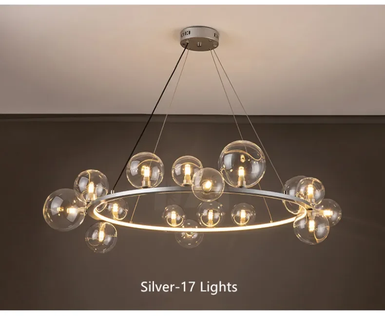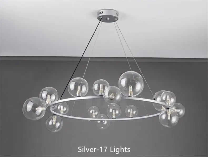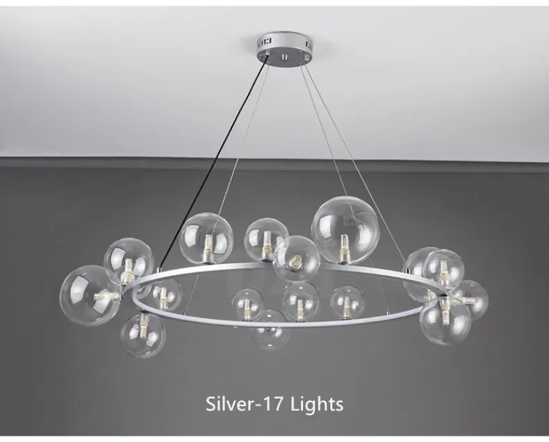 17 heads – Silver lamp body – Transparent lamp shade – Turn off the light effect live display.