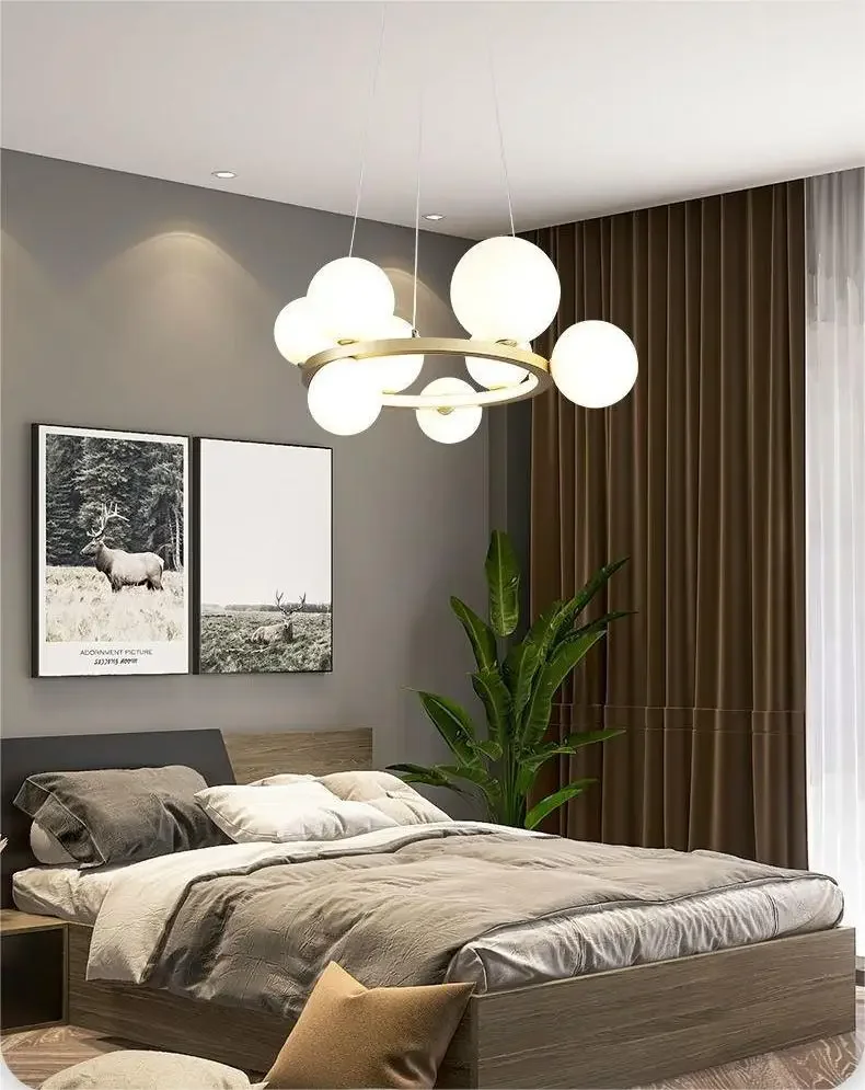 This pendant lamp is very beautiful. It consists of an aluminum lamp ring and glass lampshade. It is suitable for living rooms, dining rooms, bedrooms, and other places where you need to install it.