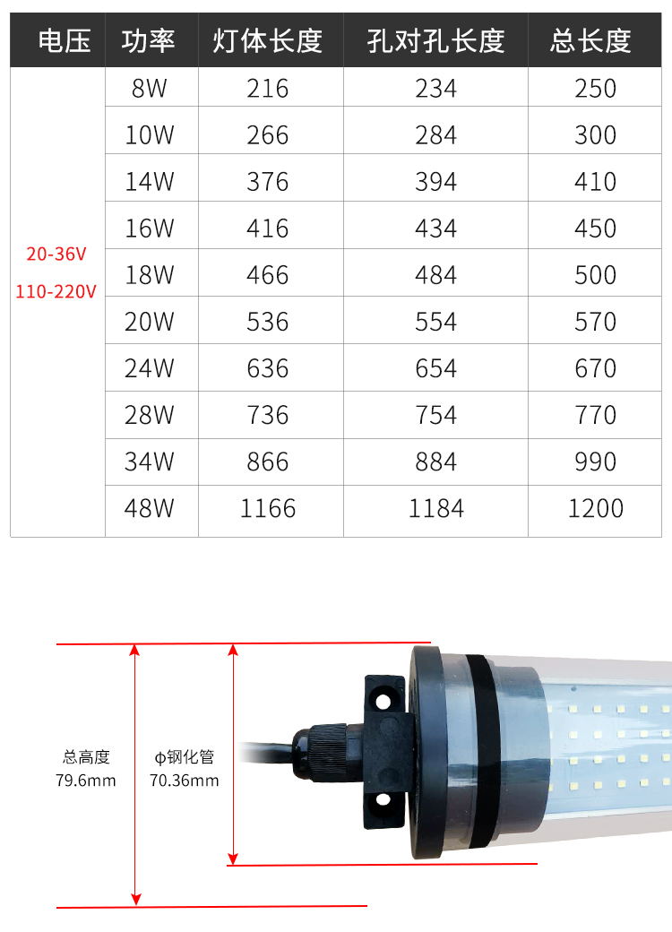 Đèn LED máy công cụ làm việc Máy tiện CNC đèn tiết kiệm năng lượng đèn huỳnh quang chống thấm nước chiếu sáng chống cháy nổ 24v220v