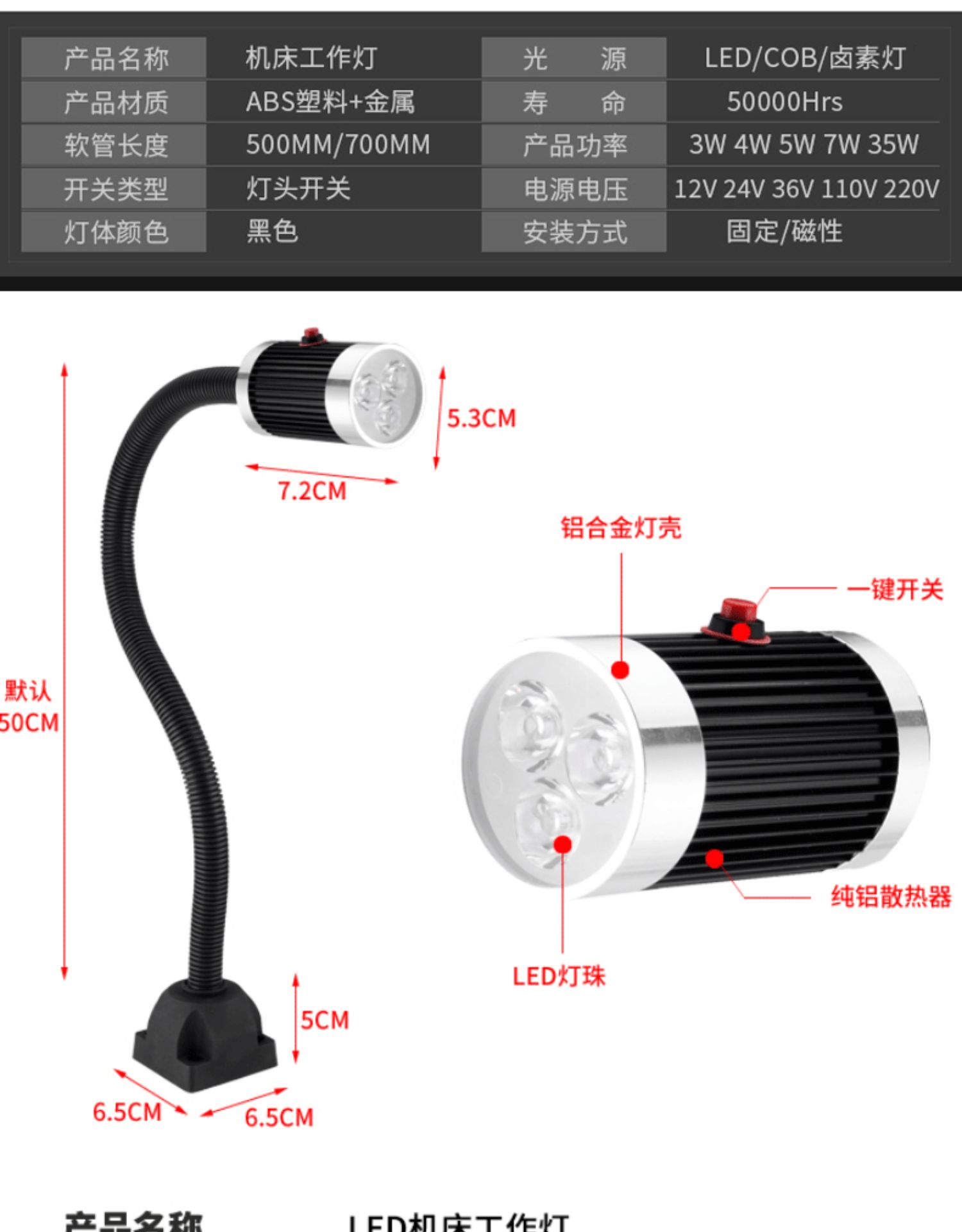 Đèn led máy công cụ làm việc Máy tiện CNC đục lỗ máy khoan máy khoan nam châm Đèn ánh sáng 24v220v36v