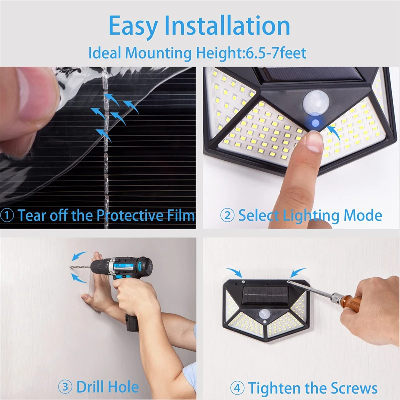 100 LED Solar Wall Lights Waterproof Outdoor Solar Lamp Wireless Solar Powered Sunlight Street Light for Garden Decoration