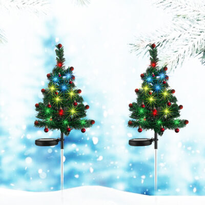Đèn LED năng lượng mặt trời mới 4 màu cây thông Noel cắm đất đèn trang trí ngoài trời Giáng sinh sân bãi cỏ sân vườn cảnh quan đèn