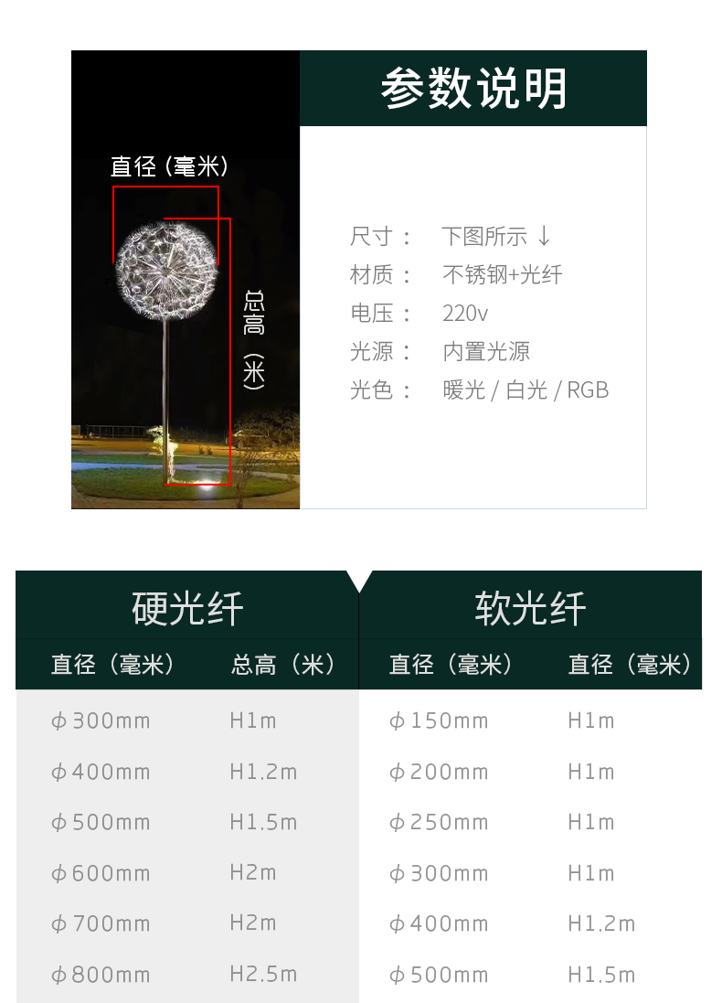 đèn led sợi quang đèn bồ công anh ngoài trời chống thấm nước sậy bãi cỏ đèn trung tâm mua sắm trung tâm bán hàng cảnh quan cực đèn sân vườn