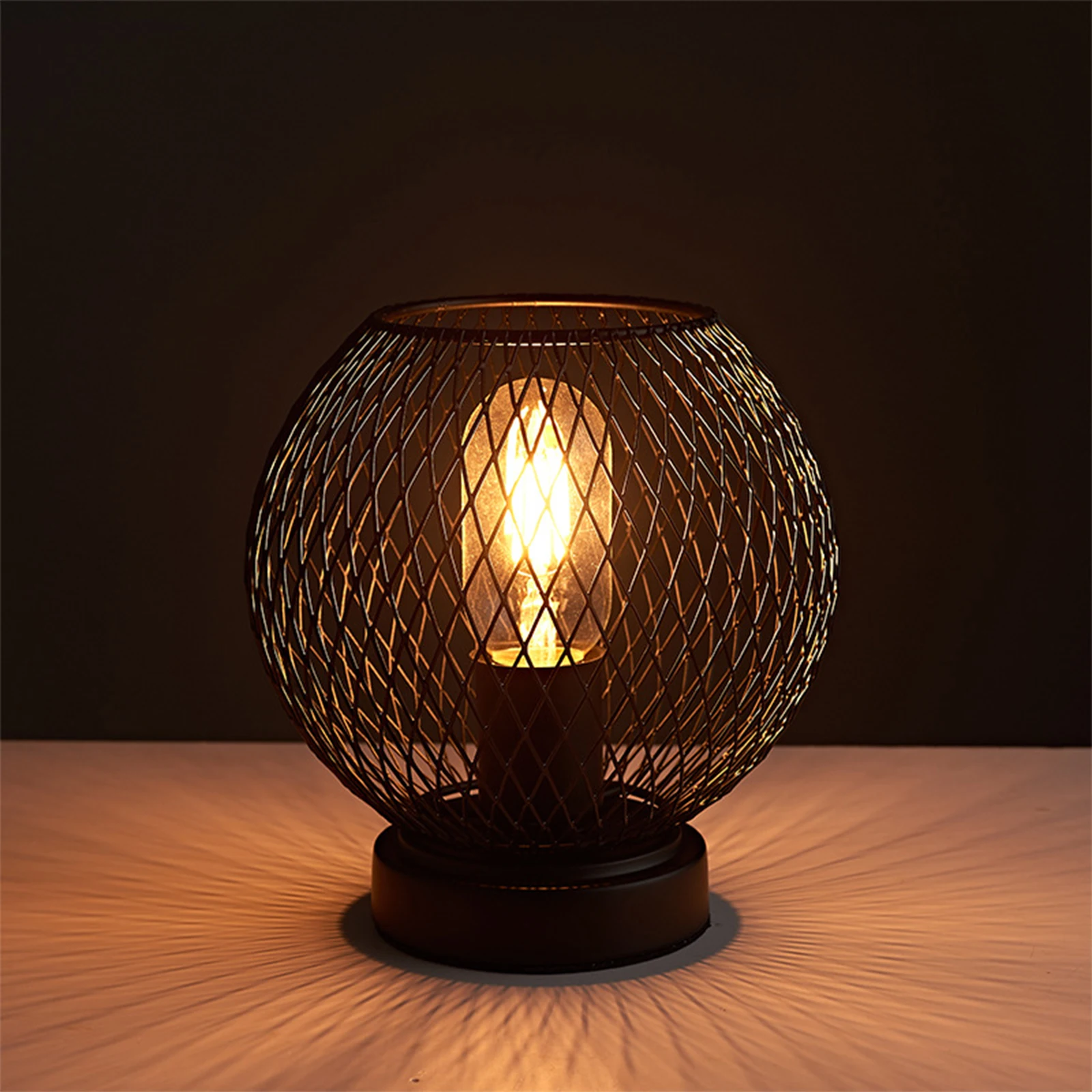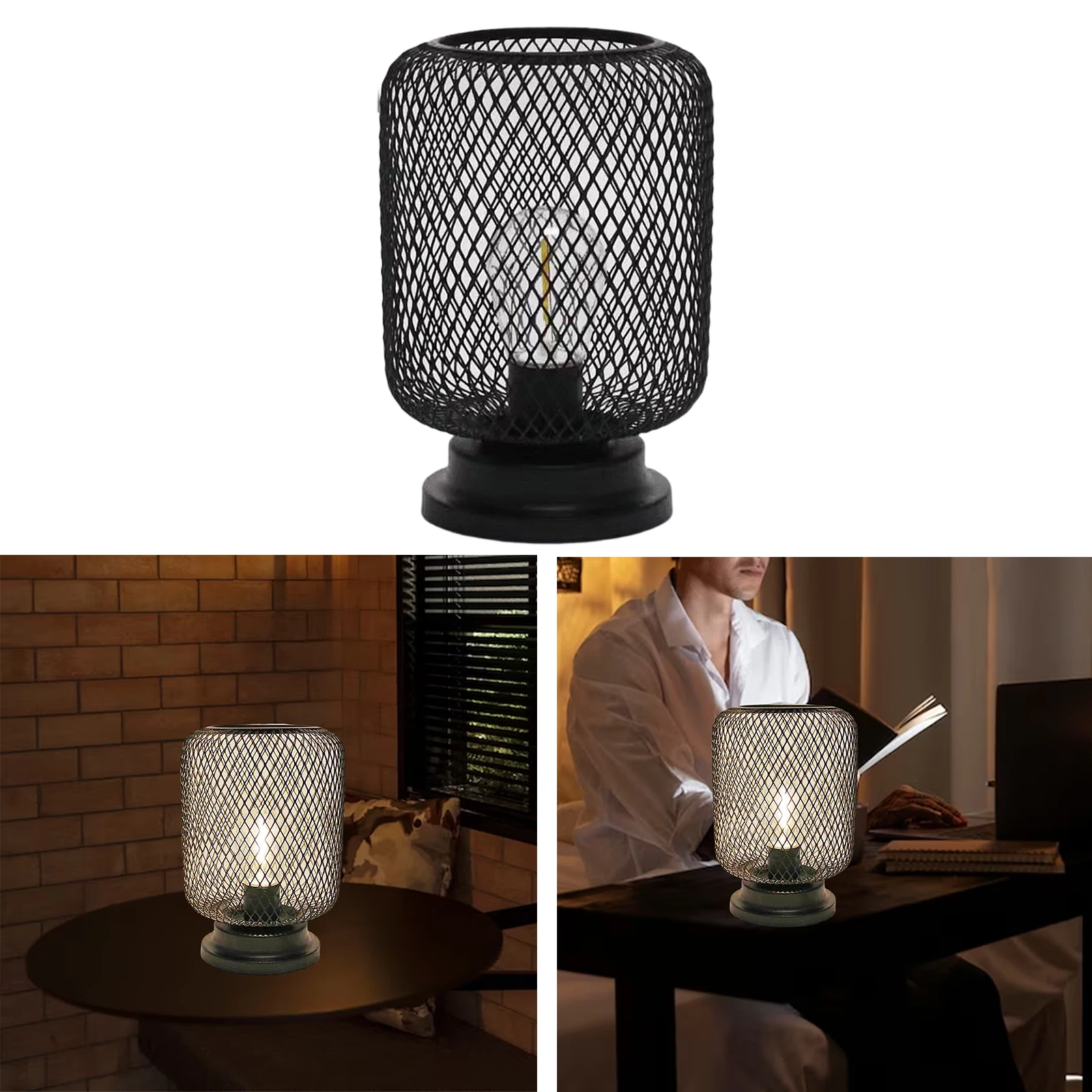 Vintage Table Lamp: Black Retro Industrial Iron Metal Wire Basket Cage light Shade Desktop Light for Bedside Desk Living Room Coffee Store Restaurant Modern Decorative.