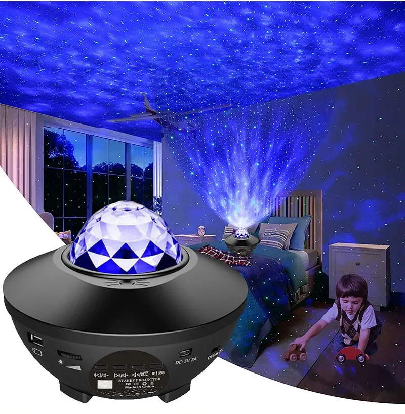 — Functions: LED Projector light, Music Speaker, Bluetooth, Remote control