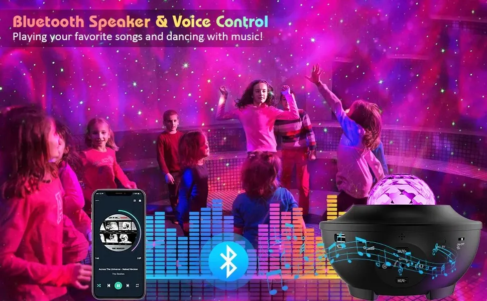 【Perfect Home Decoration & Great Gifts】 Beautiful ocean waves and starry sky on the ceiling and wall bring you a enjoyable environment with music. It is suitable for birthday, party, Wedding, home decoration, Children’s Day, Anniversary gifts. Also Perfects for indoor decoration as an ocean wave projector, romantic mood light, night light, and bedside lamp.