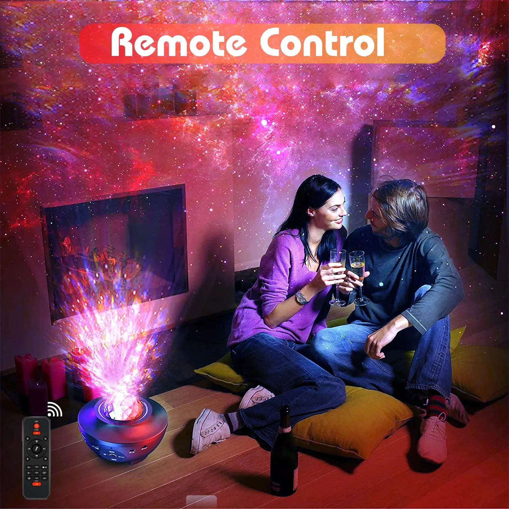 【Remote Control & Auto-Off Timer】 Light projector for bedroom with smart remote can freely control different color effects, adjust lightness, switch music mode and volume. Timing function can be set to 1 / 2 hours using time. Note: Please make sure the remote controller pointing at product remote receiving area and remote distance about 12m/39.37ft (Remote does not include a battery).