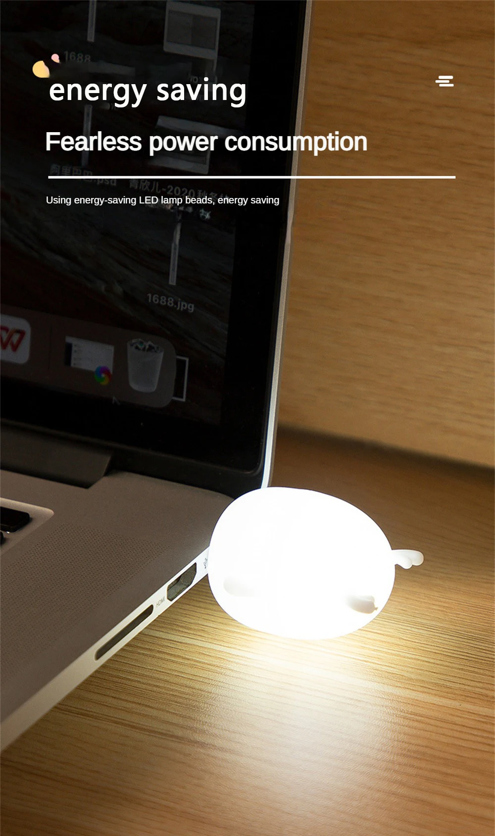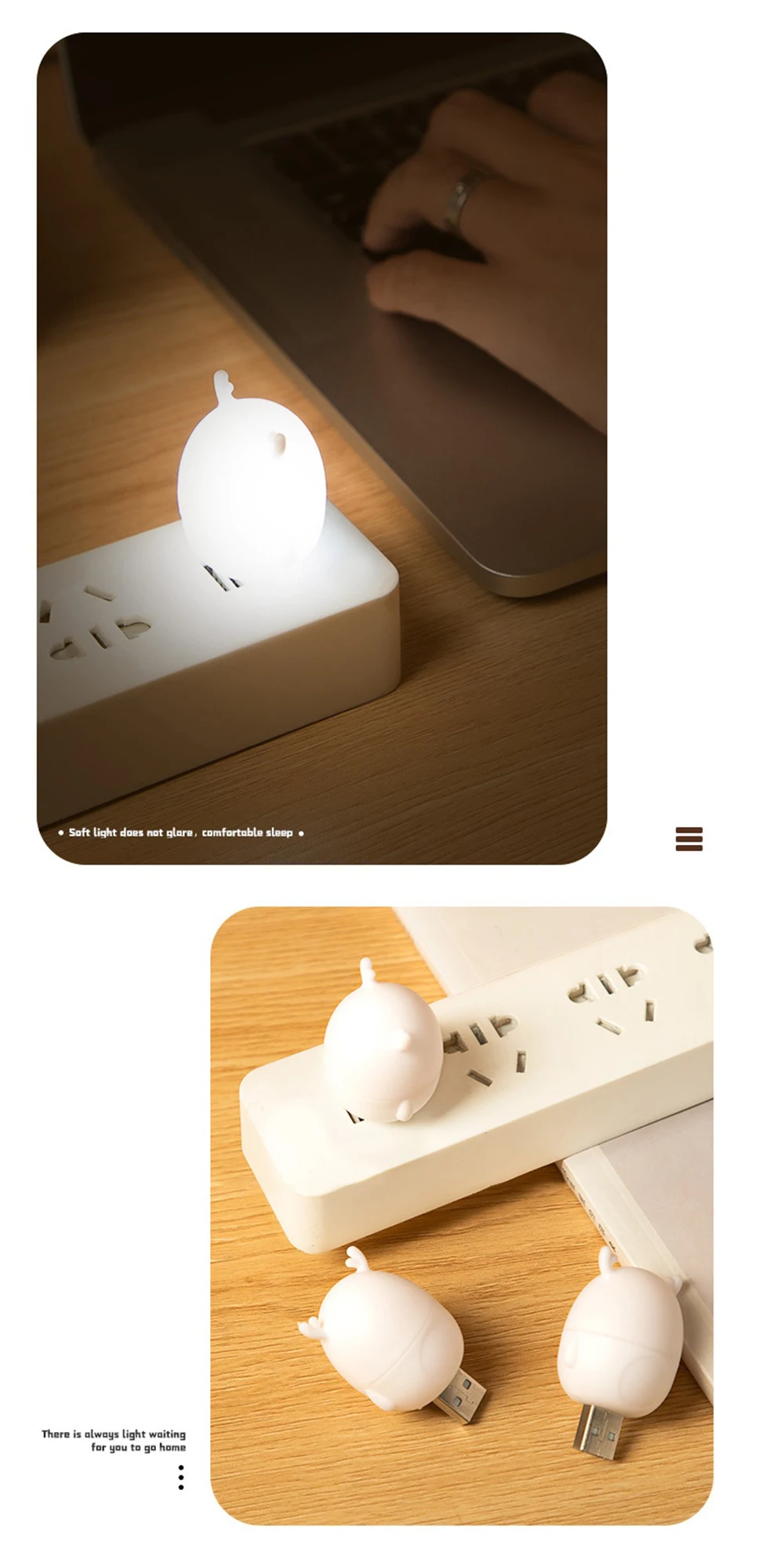 2.Simple Cute design, mini size, practical and easy to plug in any USB power sources, space saving, easy to stock and carry around, even can be taken out as a indication light on outdoor backpack or torch light outdoor in case of emergency.