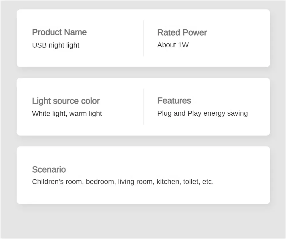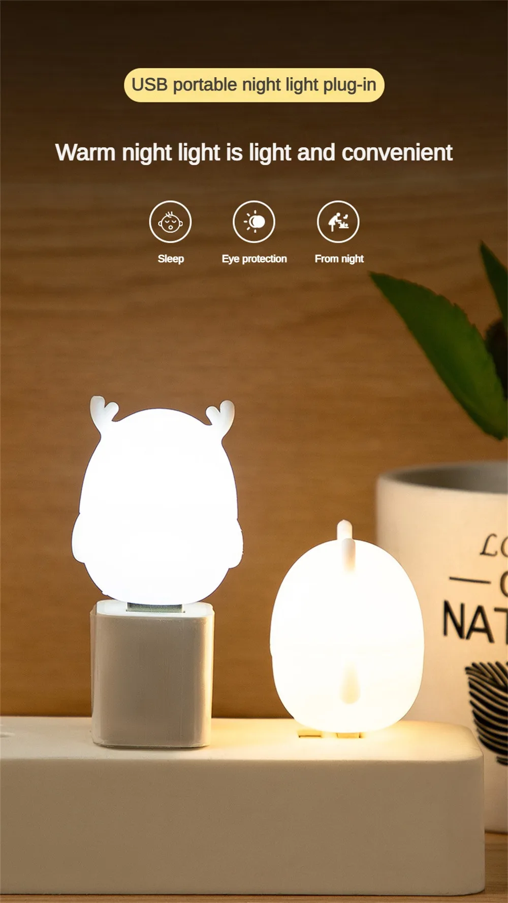 4.Environmentally friendly white material, durable bearing resistance to fall. Night light USB plug-in is bright enough at night but can save power for long time use.According to the calculation of 24 hours a day, the power consumption is less than one degree a year.