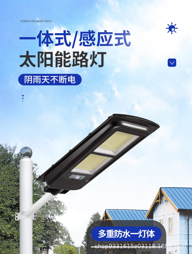 Đèn năng lượng mặt trời đèn đường đèn sân vườn ngoài trời cơ thể con người cảm ứng tích hợp chiếu sáng siêu sáng mô hình kỹ thuật công suất cao nông thôn