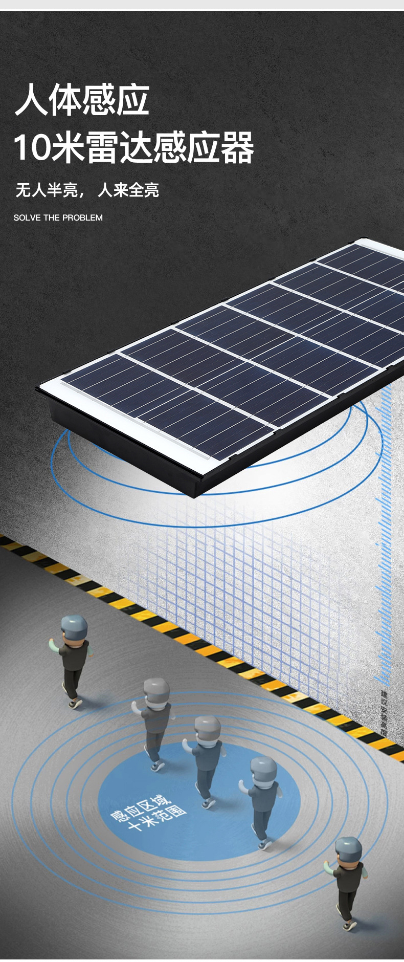 Đèn năng lượng mặt trời LED chiếu sáng sân vườn gia đình đèn ngoài trời công suất cao cảm biến radar tích hợp đèn năng lượng mặt trời