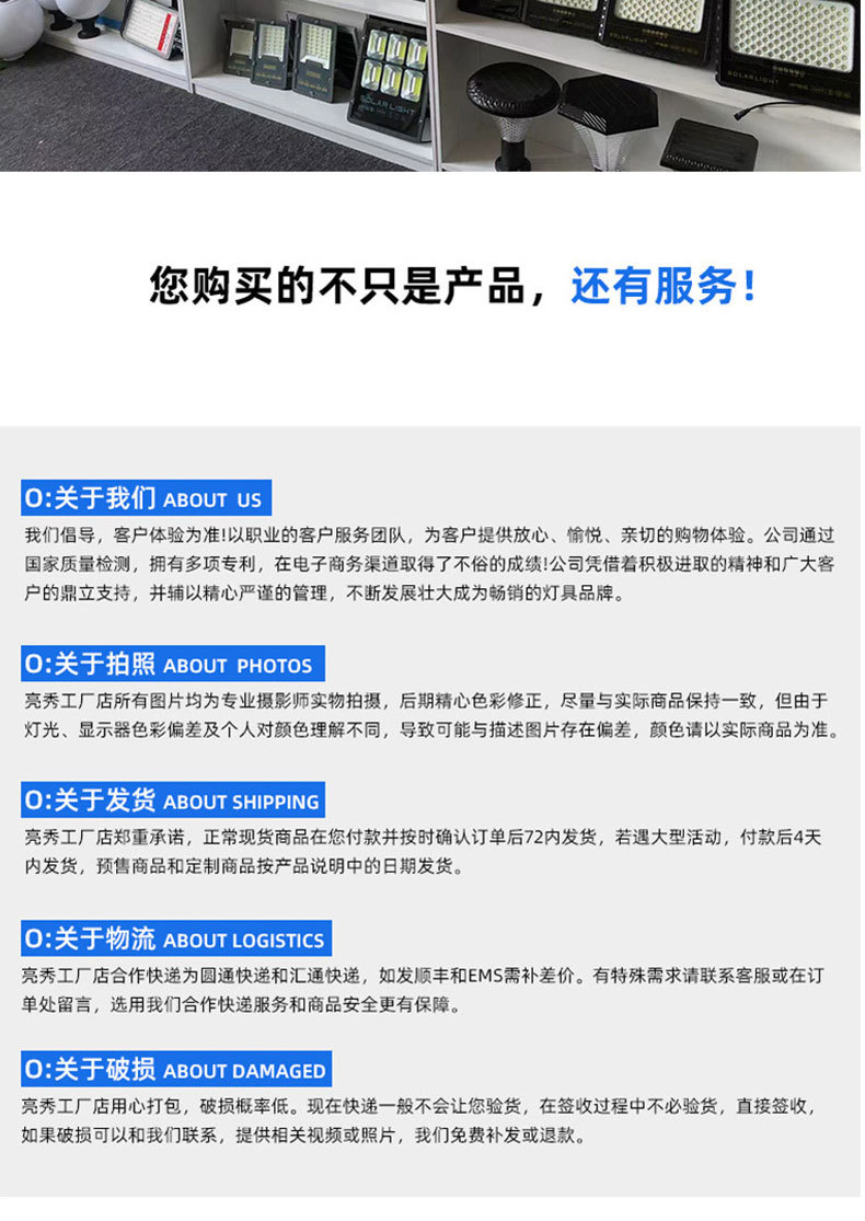 Đèn chia năng lượng mặt trời Đèn sân vườn ngoài trời Khu vườn gia đình Đèn năng lượng mặt trời ngoài trời Đèn chống lũ năng lượng mặt trời không thấm nước. Quý khách có nhu cầu mua Đèn ngoài trời nhập khẩu vui lòng liên hệ với chúng tôi để được tư vấn hỗ trợ. Dịch vụ mua hàng Trung Quốc sẽ hỗ trợ quý khách mua hàng từ nhà cung cấp và giao tới tận tay quý khách hàng..Xuất xứ: Quảng Đông Mã sản phẩm: Đèn năng lượng mặt trời Thương hiệu: Hạt đèn khác Thương hiệu: 2835 Model: Đèn năng lượng mặt trời Công suất định mức: 100 Được cấp bằng sáng chế: Không Chứng nhận: Không Là người nộp thuế chung: Có Loại công tắc: Điều khiển từ xa Tuổi thọ: 10000 Loại nguồn sáng : Cấp bảo vệ đèn LED: IP67 Điện áp: 6 Kích thước: Liên hệ trực tiếp với bộ phận dịch vụ khách hàng để xem có độc quyền xuất khẩu xuyên biên giới hay không Nguồn cung cấp: Không Hình dạng: Hình vuông Phân loại thông số kỹ thuật: 100W/200W/300W/400W/400W Phong cách: Trung Quốc Chiếu sáng liên tục thời gian: 12 giờ (đã bao gồm) -16 giờ (không bao gồm) Có nên nhập hay không: Không