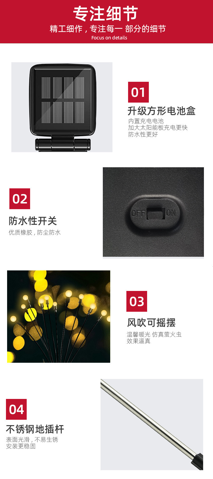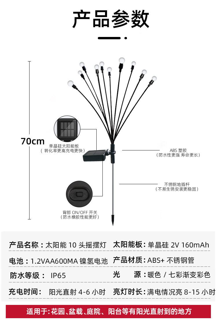 Đèn LED đom đóm đèn năng lượng mặt trời ngoài trời chống nước dạ quang bãi cỏ trang trí đèn sân vườn đèn mặt đất đèn cảnh quan. Quý khách có nhu cầu mua Đèn ngoài trời nhập khẩu vui lòng liên hệ với chúng tôi để được tư vấn hỗ trợ. Dịch vụ mua hàng Trung Quốc sẽ hỗ trợ quý khách mua hàng từ nhà cung cấp và giao tới tận tay quý khách hàng..Nơi xuất xứ: Thái Châu, Chiết Giang Số sản phẩm: SY-69966 Thương hiệu: Các mẫu khác: 1208 Phạm vi ứng dụng chính: Bố trí bầu không khí ngoài trời trong sân vườn Được cấp bằng sáng chế: Không Thông số kỹ thuật: Mô hình năng lượng mặt trời 6 đầu ấm áp/Mô hình năng lượng mặt trời 8 đầu ấm áp /Mô hình năng lượng mặt trời 10 đầu ấm/Mô hình năng lượng mặt trời 6 đầu màu/Mô hình năng lượng mặt trời 8 đầu màu/Mô hình năng lượng mặt trời 10 đầu màu/Mô hình năng lượng mặt trời 10 đầu màu Chứng nhận: Không có Số đơn đặt hàng: 1208 Liệu đó có phải là người nộp thuế chung hay không: Không Chất liệu: Nhựa Loại nguồn sáng: Đèn tiết kiệm năng lượng Mức độ bảo vệ: IP65 Tùy chỉnh gia công: Có Có độc quyền xuất khẩu xuyên biên giới Nguồn cung cấp: Không Kiểu dáng: Hiện đại và đơn giản Cho dù nhập khẩu: Không Loại: Đèn cảnh quan năng lượng mặt trời