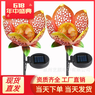| 厂家现货太阳能铁艺太阳花镂空装饰草坪灯双装单装镂空灯笼提灯草 |