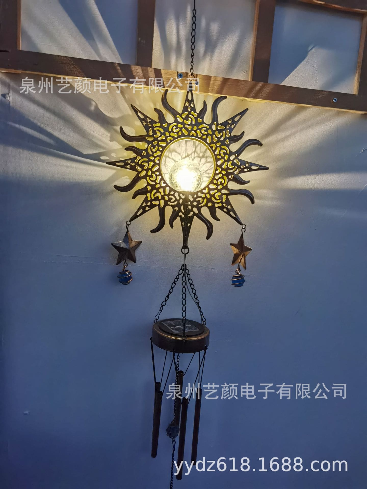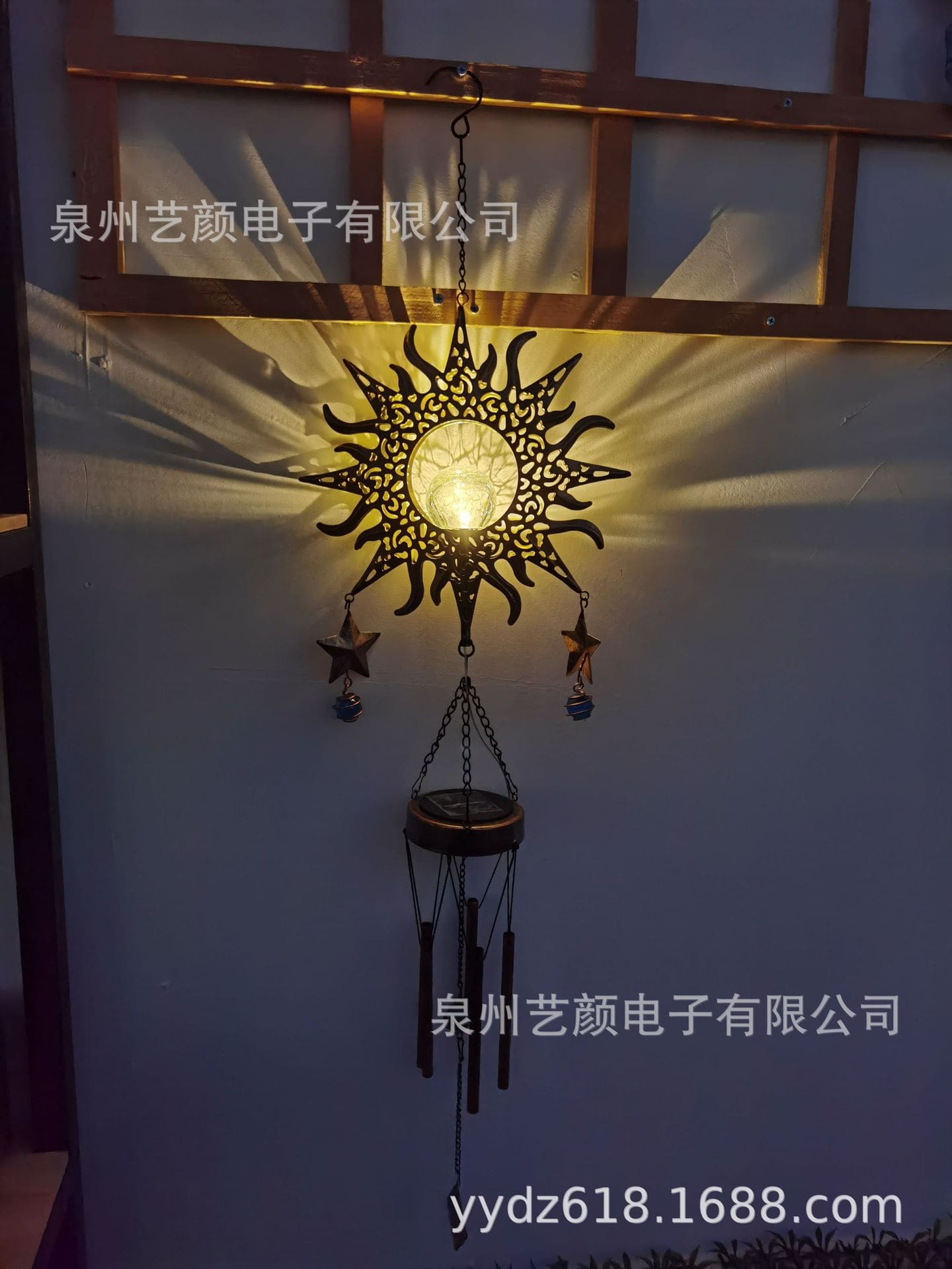 | 现货跨境新品 太阳能 铁艺镂空太阳 太阳能镂空魔杖月亮光芒灯 |