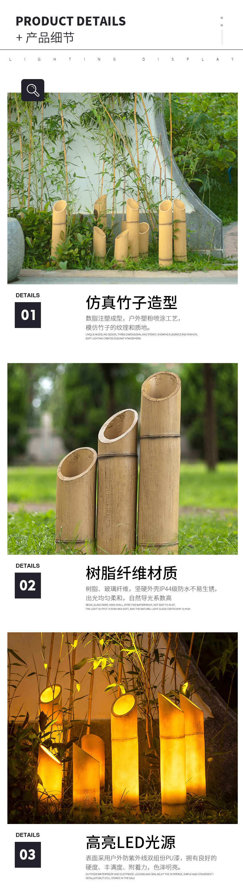 ĐÈN LED Chống Thấm Nước Dạ Quang Đèn Tre Sân Vườn Ngoài Trời Sân Vườn Đèn Năng Lượng Mặt Trời Phong Cảnh Trang Trí Bãi Cỏ Đèn