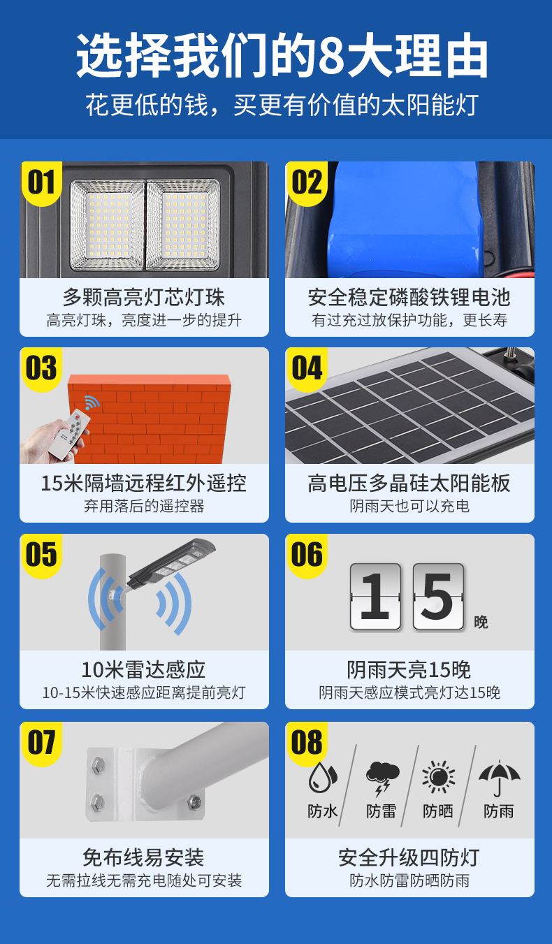 Đèn năng lượng mặt trời với cột đèn cảm ứng cơ thể con người đèn ngoài trời gia đình siêu sáng công suất cao chiếu sáng sân đèn đường nông thôn mới