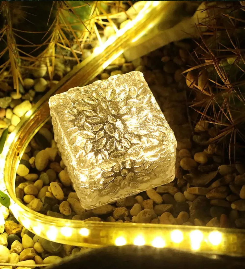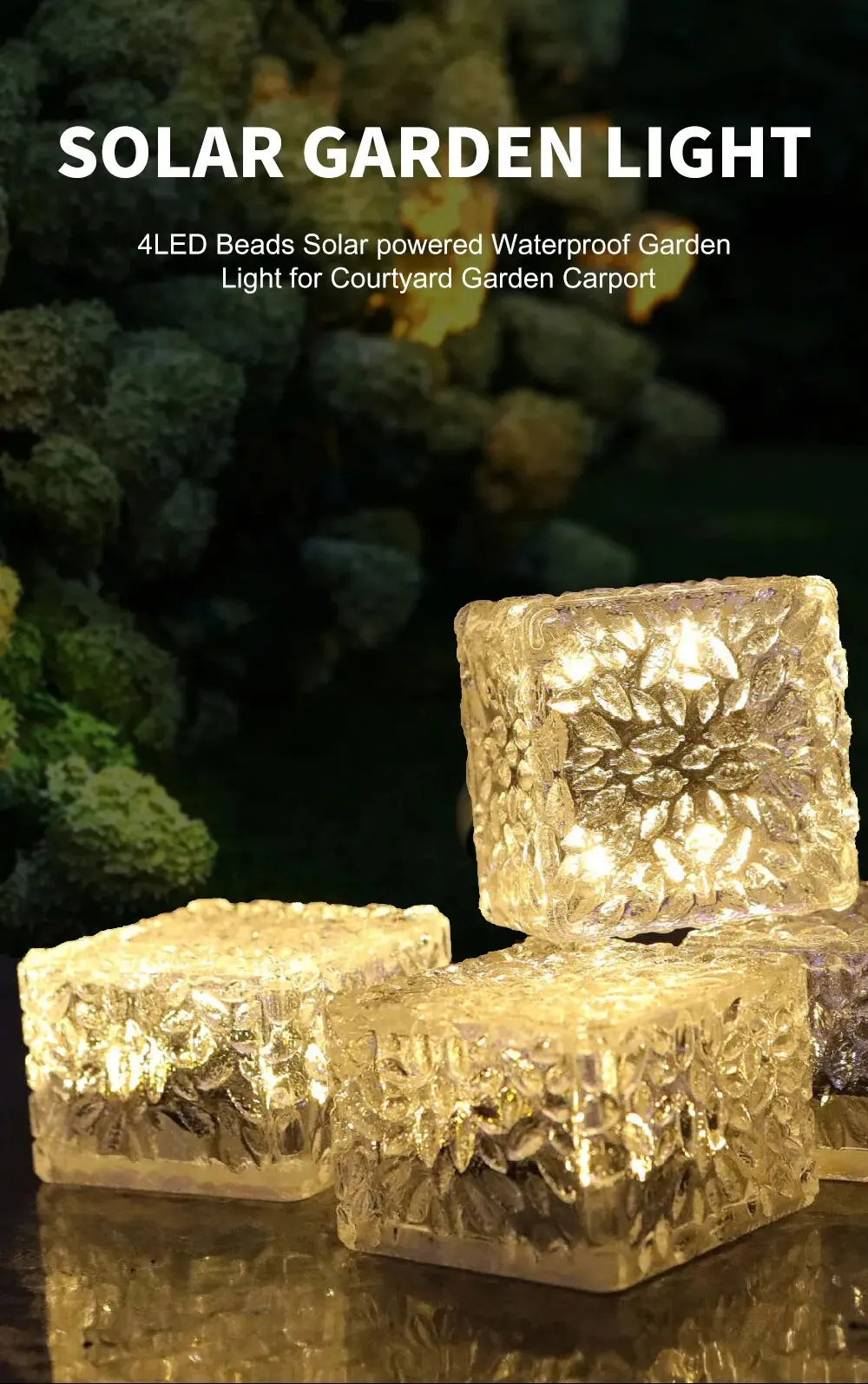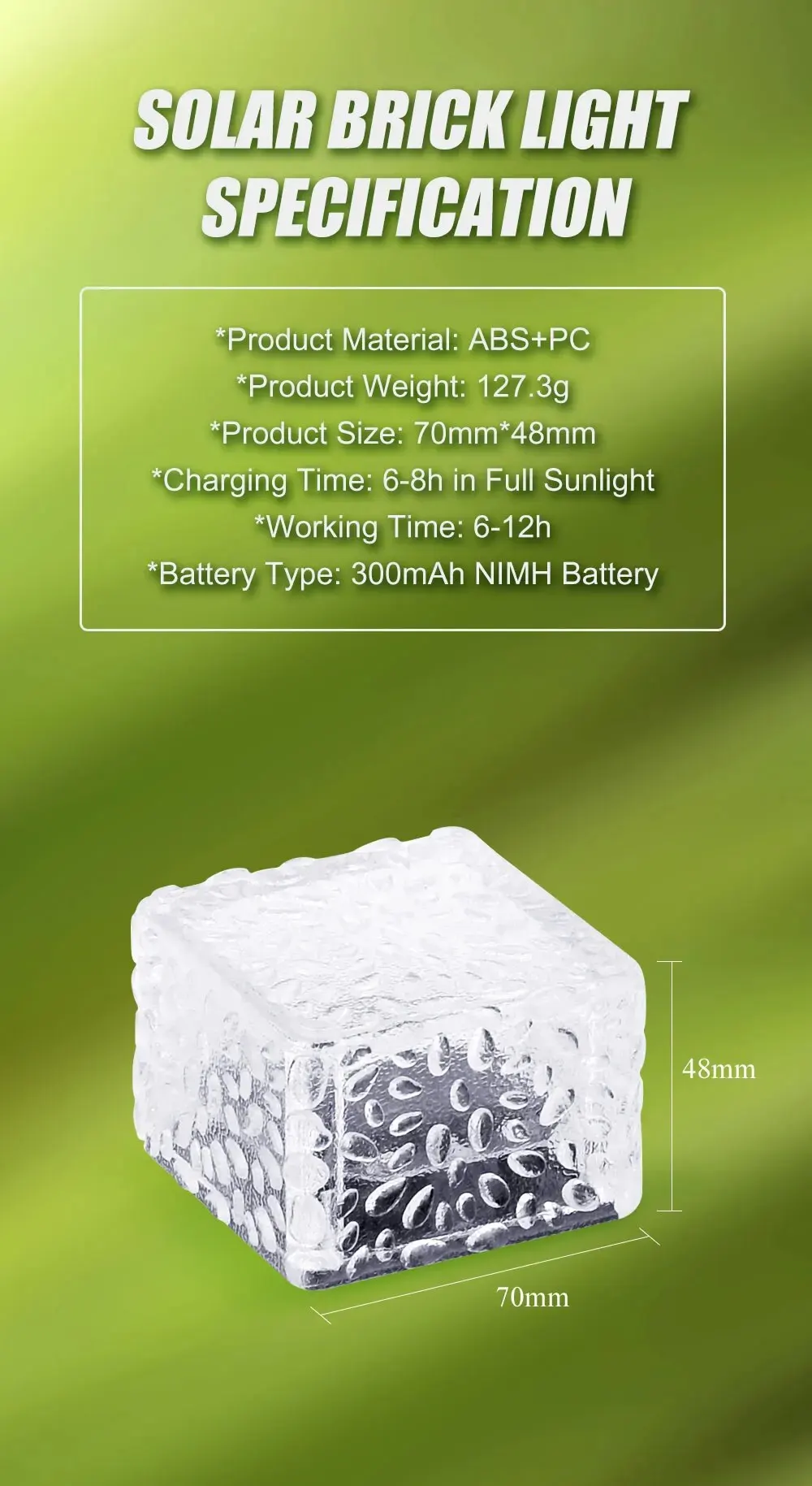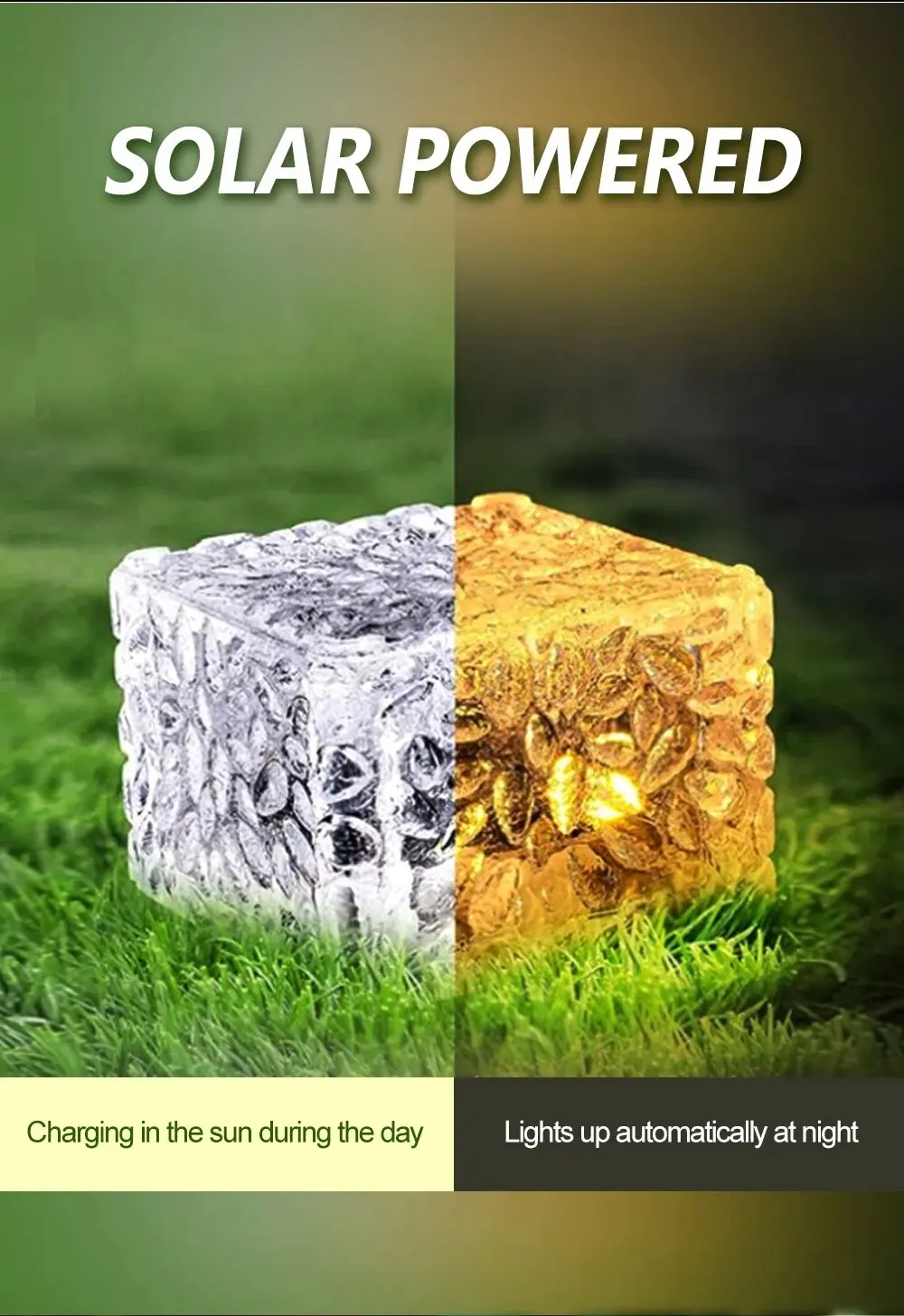 CRYSTAL BRICK STYLE:Solar pavers lights with a warm white LED, light becomes soft throughout the frosted material, a creative decoration in garden to make romantic atmosphere.