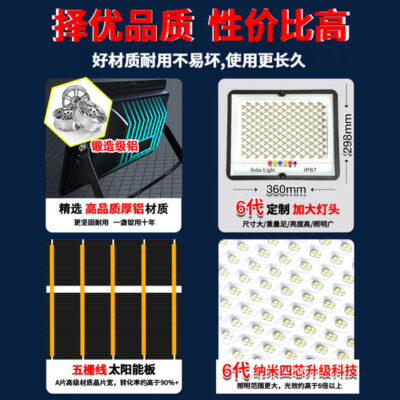 Đèn năng lượng mặt trời đèn sân vườn ngoài trời one drag two đèn cảm biến ánh sáng nông thôn mới đèn lũ công suất siêu cao siêu sáng