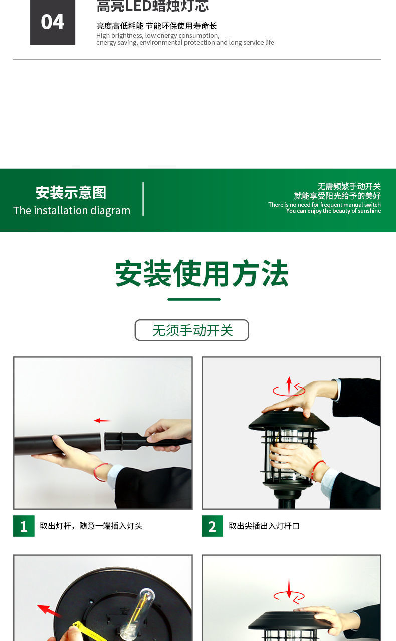 Đèn năng lượng mặt trời mới bãi cỏ biệt thự không thấm nước sân tối tự động sáng sân vườn nhà ngoài trời bãi cỏ ánh sáng sân vườn