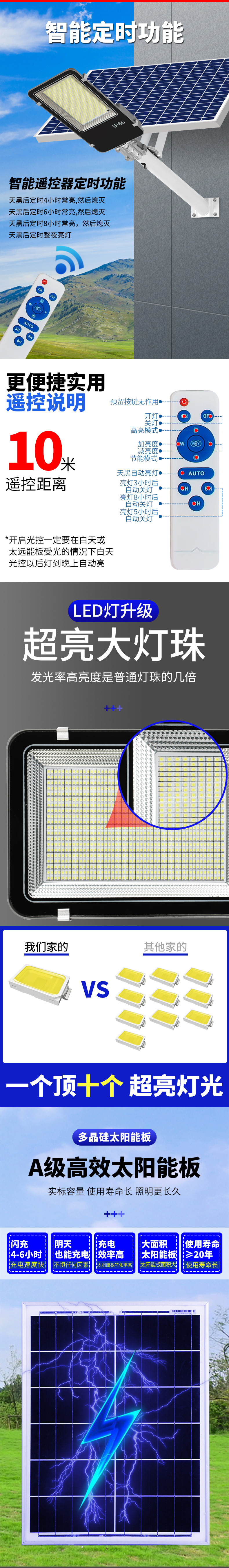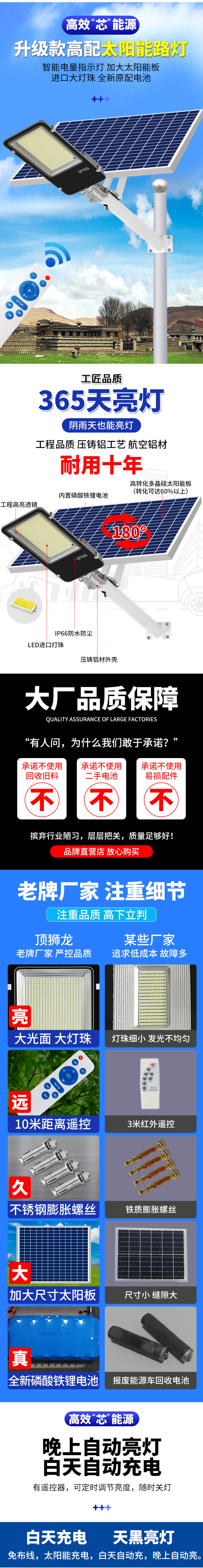 Năng lượng mặt trời ngoài trời đèn đường sân vườn đèn hộ gia đình dẫn siêu sáng công suất cao đường nông thôn mới với cột đèn chiếu sáng