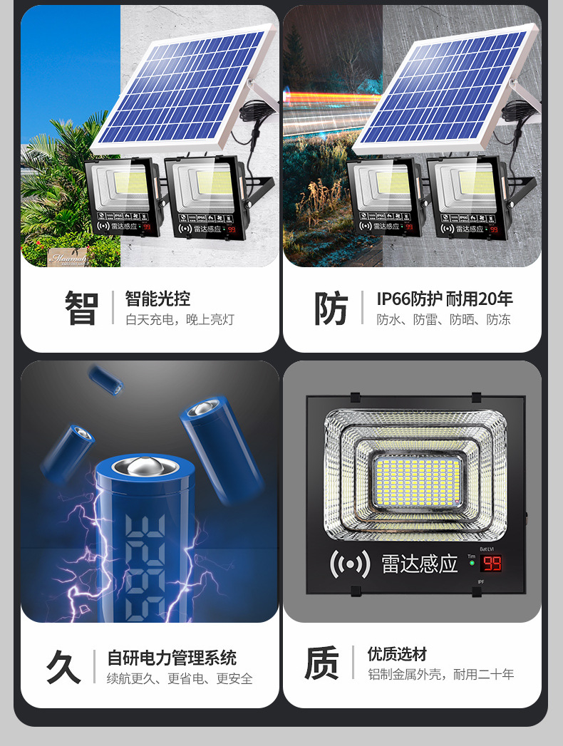 Đèn năng lượng mặt trời ngoài trời Đèn sân vườn siêu sáng nhà ở nông thôn ngoài trời công suất cao chống nước cảm biến một đến hai ánh sáng chiếu sáng