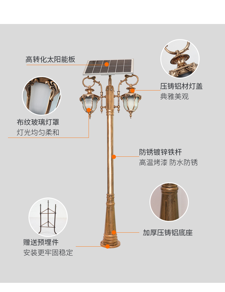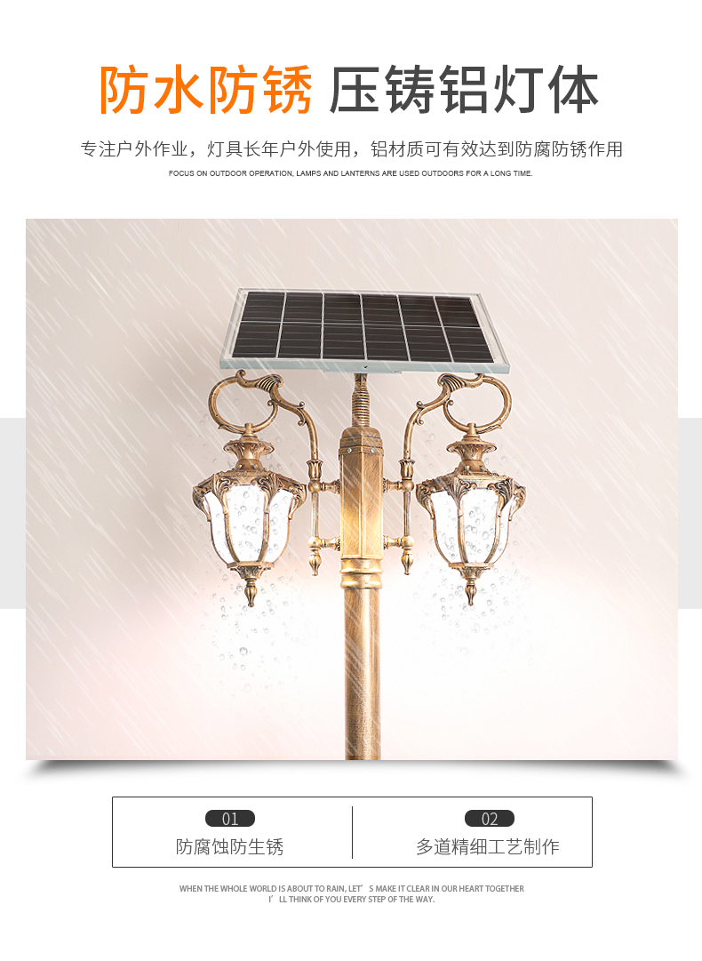 Đèn năng lượng mặt trời ngoài trời sân vườn không thấm nước retro hoài cổ. Đèn côn viên sân vườn cảnh quan biệt thự hộ gia đình đường phố