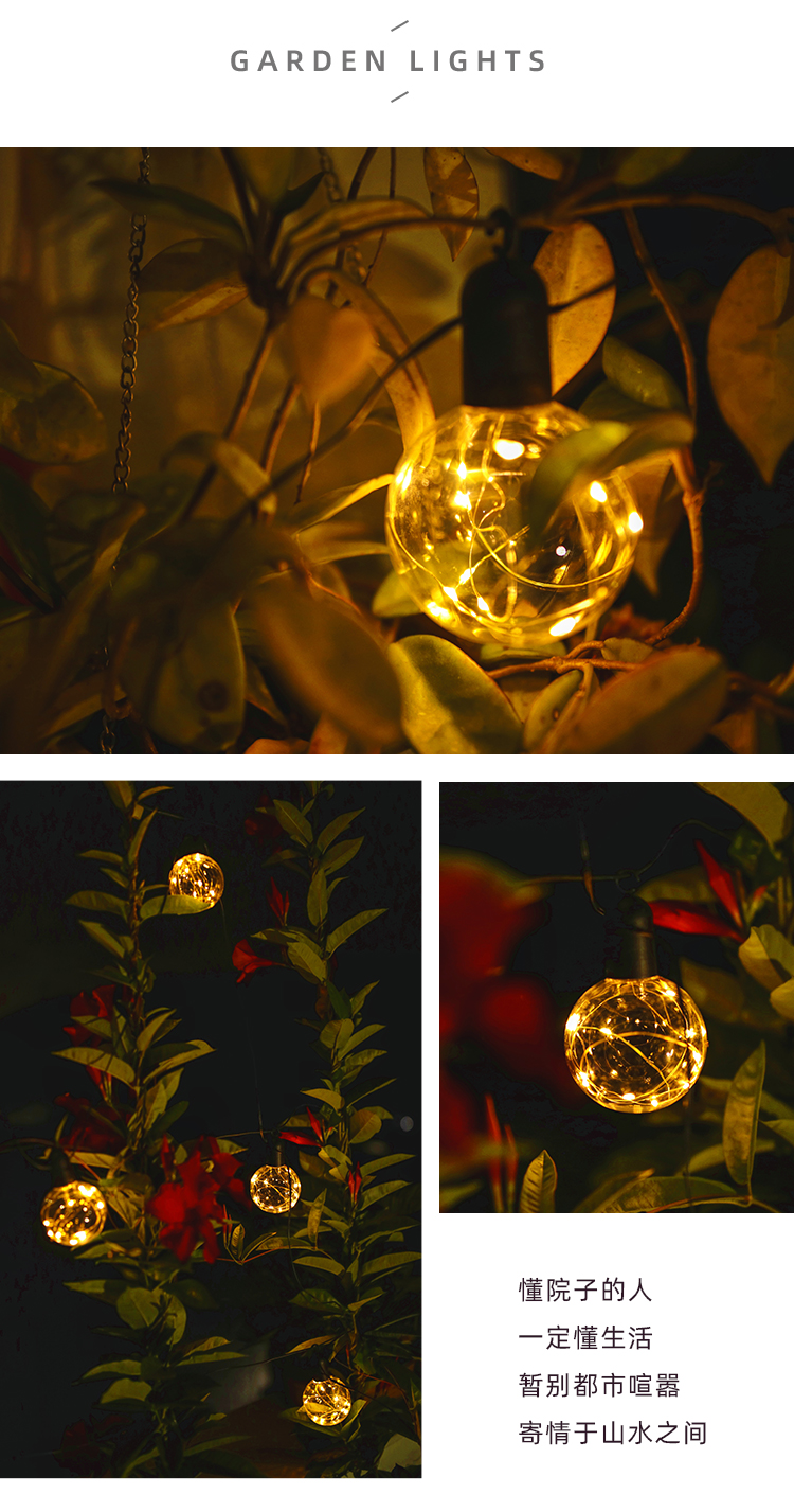 Đèn năng lượng mặt trời sân vườn ngoài trời đèn treo không thấm nước bố trí Lễ hội mùa xuân đèn lồng trang trí sân vườn đèn nhấp nháy đèn dây hộ gia đình