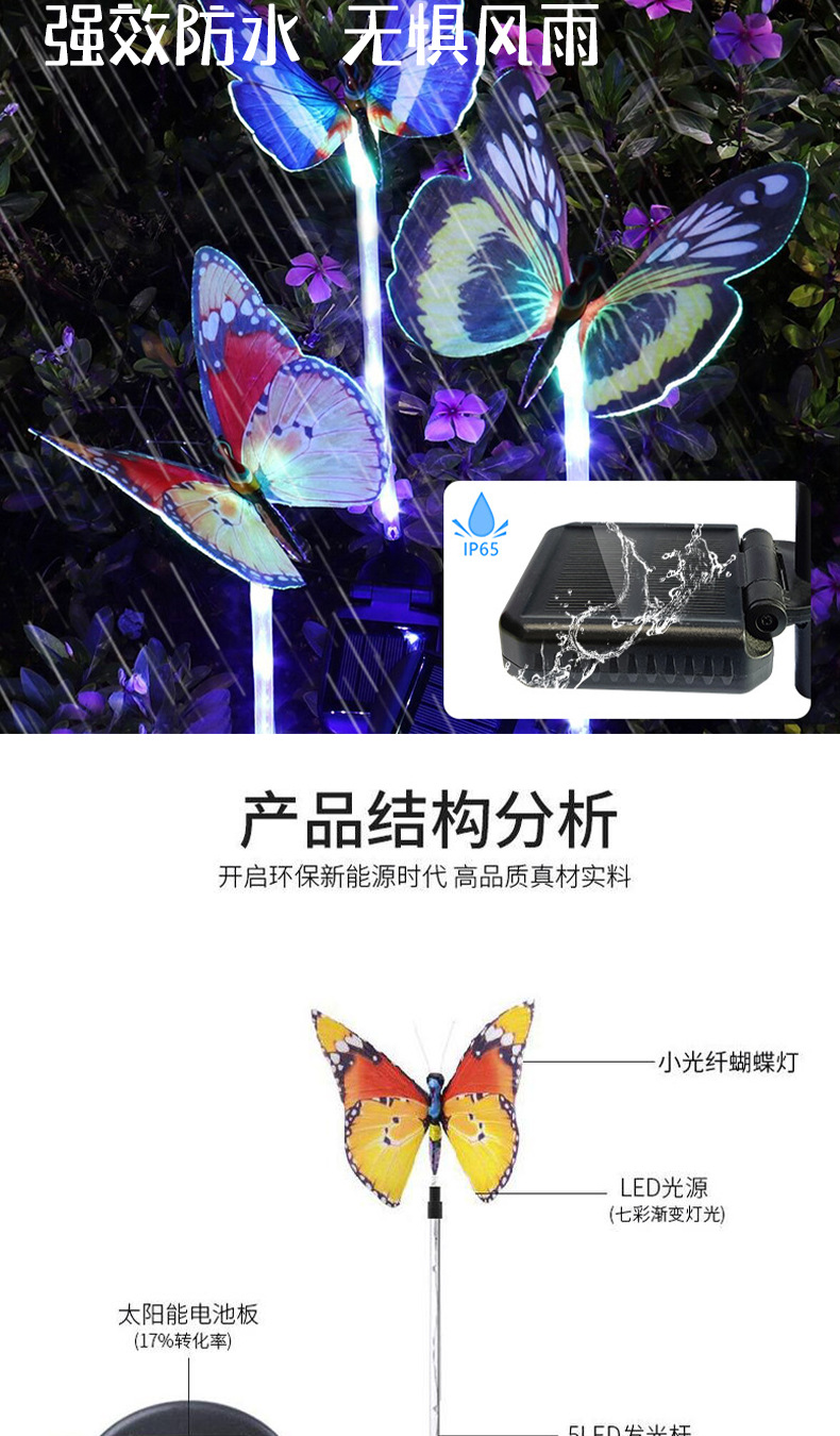 Đèn ngoài trời năng lượng mặt trời đèn led bướm chống thấm nước sân vườn ban công trang trí phong cảnh bãi cỏ cắm đất đèn lồng đèn
