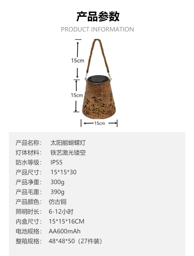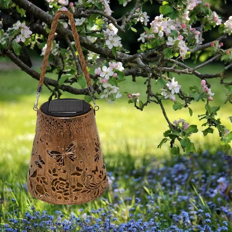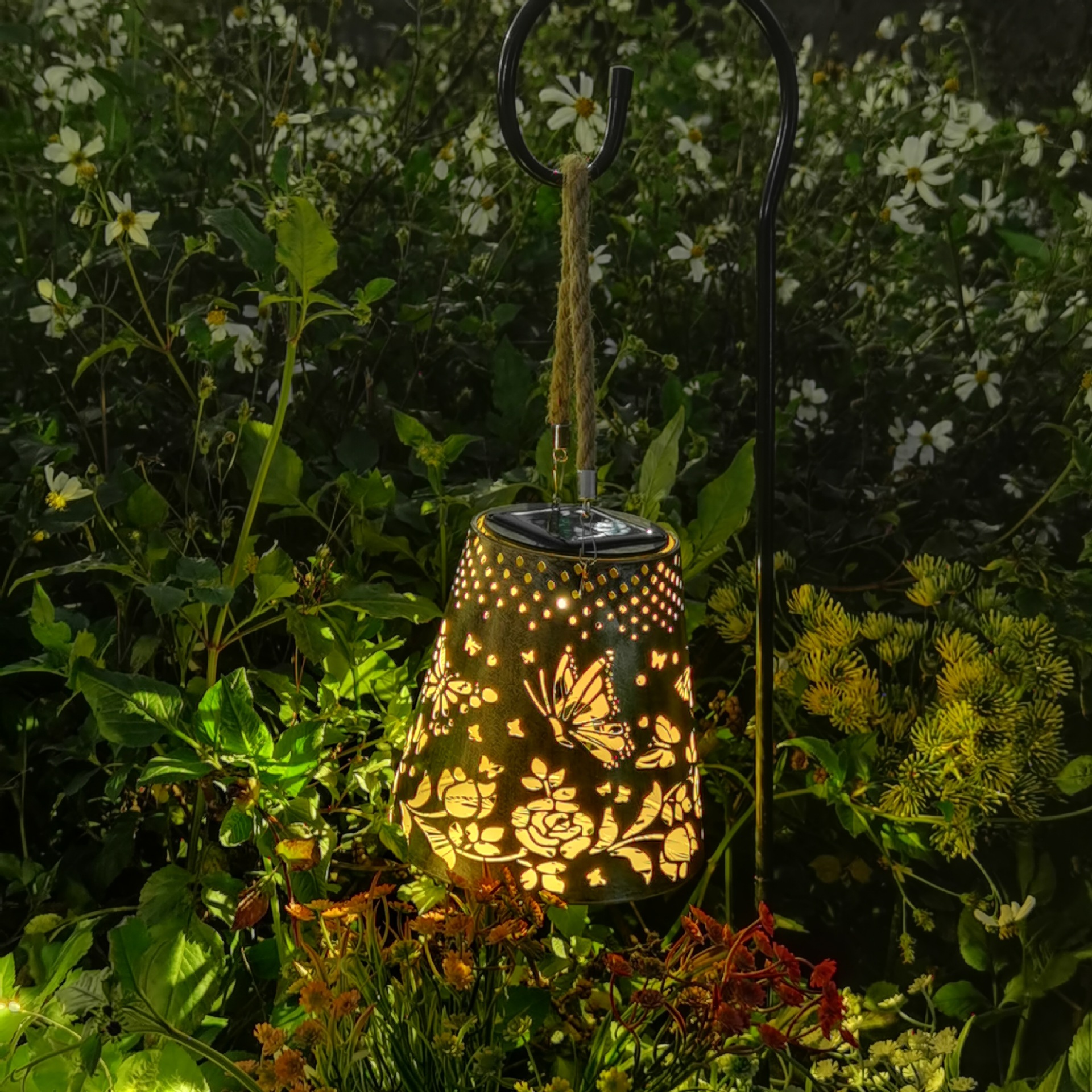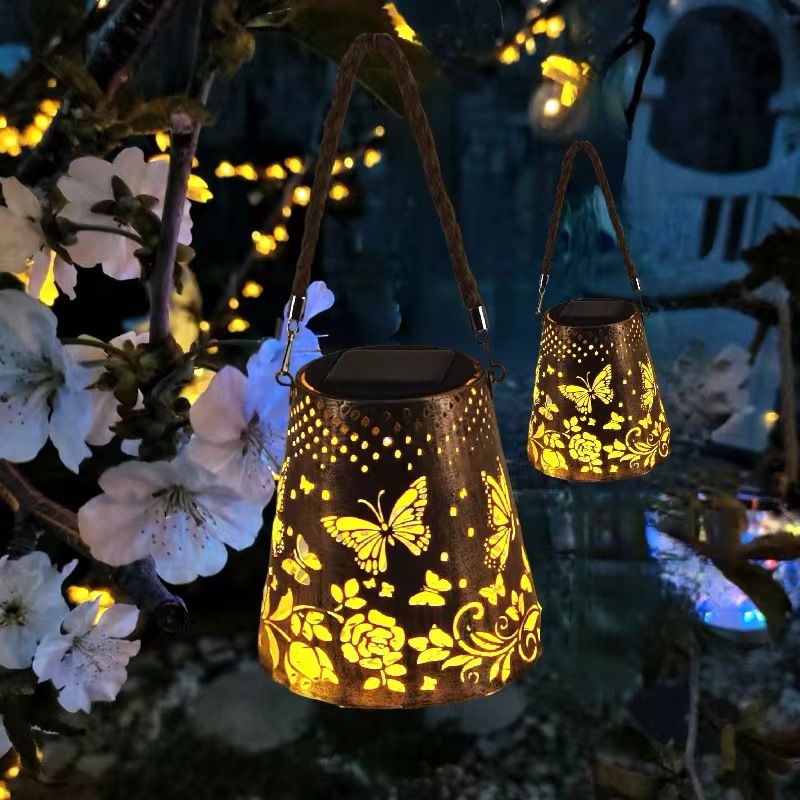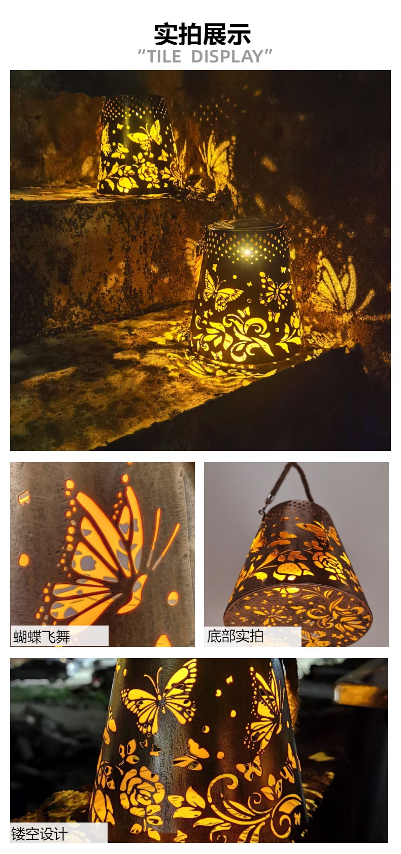 Nhà máy sản xuất trực tiếp năng lượng mặt trời đèn bướm ngoài trời trang trí sân vườn không thấm nước đèn sắt rèn bố trí sân vườn điều khiển ánh sáng đèn rỗng