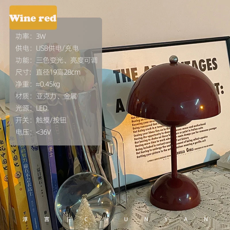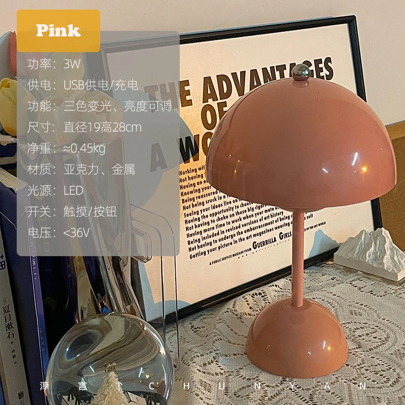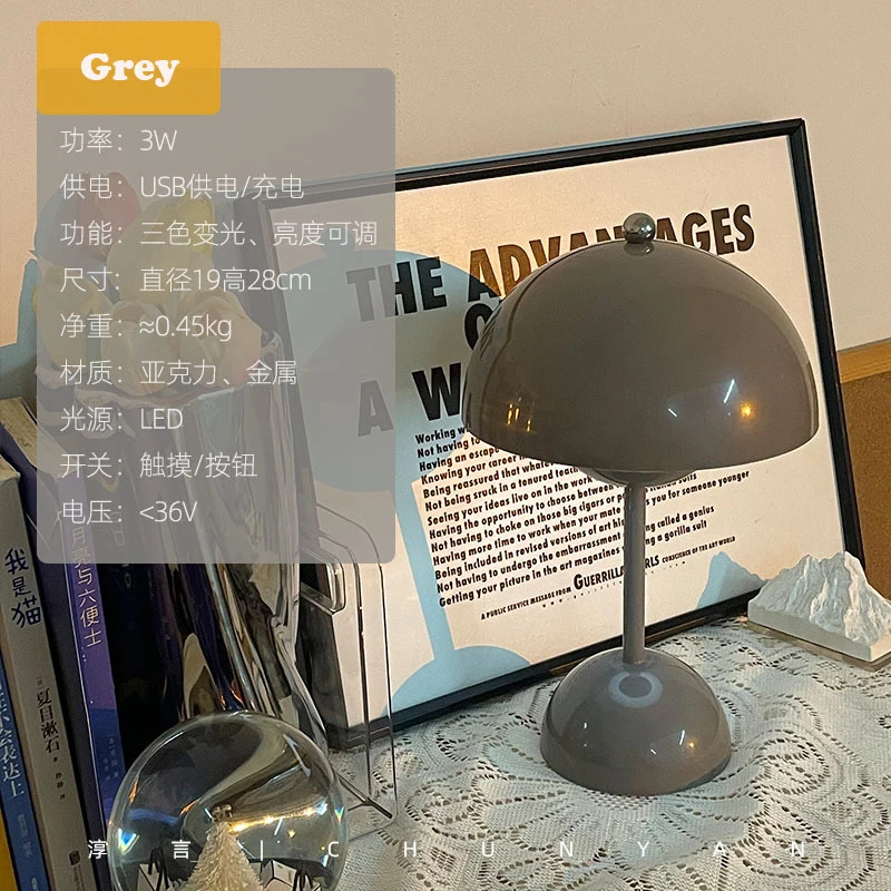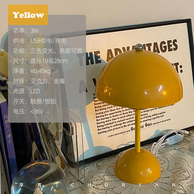 Colorful Mushroom Flower Bud Bedroom Led Table Lamp Touch Dimming Rechargeable Desk Lamp Atmosphere Decor Bedside Night Light