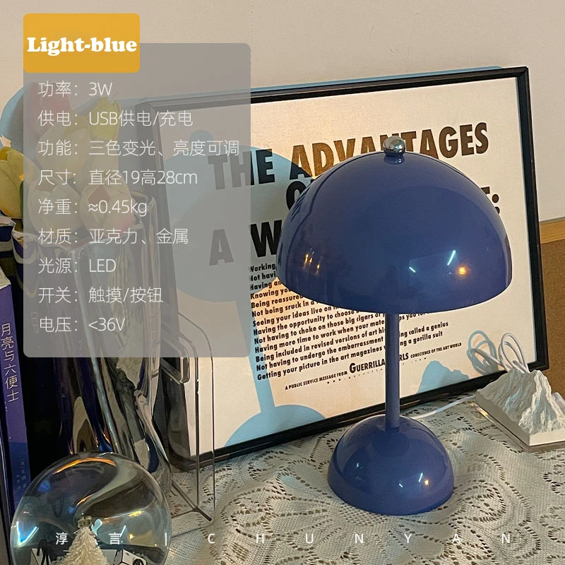 Nhiều Màu Sắc Hình Nấm Nụ Hoa Phòng Ngủ Đèn LED Để Bàn Cảm Ứng Mờ Sạc Để Bàn Bầu Không Khí Trang Trí Đầu Giường Đèn Ngủ. Quý khách có nhu cầu mua Đèn để bàn nhập khẩu vui lòng liên hệ với chúng tôi để được tư vấn hỗ trợ. Dịch vụ mua hàng Trung Quốc sẽ hỗ trợ quý khách mua hàng từ nhà cung cấp và giao tới tận tay quý khách hàng..Loại phích cắm: Không có Màu khung: TRẮNG Số kiểu: Nụ hoa hình nấm đầy màu sắc Đèn bàn phòng ngủ Led Ứng dụng: Phòng ngủ Kỹ thuật: Mạ Màu thân: Xanh lam Chất liệu: Acrylic Bảo hành: 1 năm Loại bóng: Kính mờ Hướng bóng: Xuống có thể điều chỉnh độ sáng: Có Lớp hoàn thiện:Chrome sáng bóng Loại công tắc: Công tắc bật/tắt cảm ứng Loại đế: Không có Nguồn điện: DC Phong cách: Phong cách hiện đại Công suất: 0-5W Chất liệu thân: Nhôm, PC Chứng nhận: CCC, ce, ROHS Điện áp: 5V Nguồn sáng: Bóng đèn LED Có bao gồm bóng đèn:Có Tên thương hiệu:nitidsky Xuất xứ:Trung Quốc Đại lục Chứng nhận:RoHS,CE,CCC Loại sản phẩm:Đèn bàn