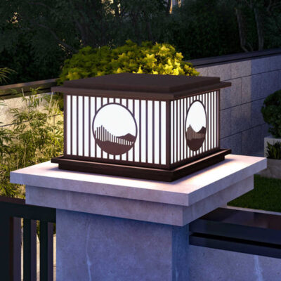 Đèn pha cột năng lượng mặt trời phong cách Trung Quốc mới ngoài trời cột cửa bài homestay phong cách Trung Hoa biệt thự sân vườn không thấm nước bốn màu đèn tự động