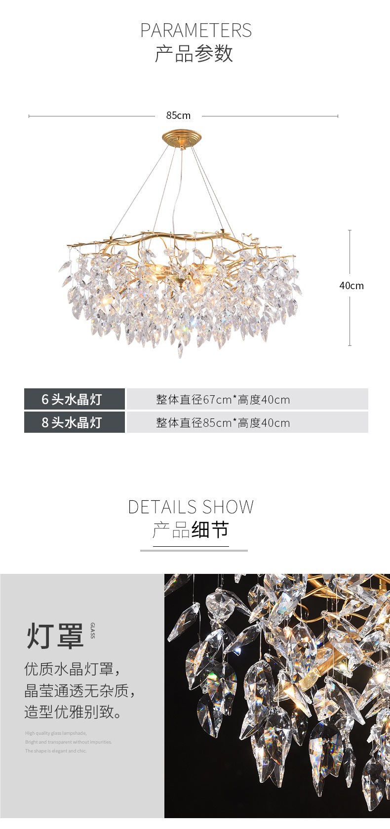 Ánh sáng hậu hiện đại đèn chùm sang trọng đèn chùm đèn pha lê nhà hàng phòng ngủ khí quyển đơn giản nhà thiết kế người Pháp đèn phòng khách sáng tạo. Quý khách có nhu cầu mua Đèn chùm nhập khẩu vui lòng liên hệ với chúng tôi để được tư vấn hỗ trợ. Dịch vụ mua hàng Trung Quốc sẽ hỗ trợ quý khách mua hàng từ nhà cung cấp và giao tới tận tay quý khách hàng..Số mặt hàng: Quảng Đông Thương hiệu: Lanqi Được cấp bằng sáng chế: Không Tuổi thọ trung bình: 100 Chứng nhận: Khác Cho dù nó được giao đến tận nhà của bạn hay không: Giao lên tầng trên Màu sáng: 8806-6/8806-8/8806-10 (đường kính 1 mét)/ 8806 -10 (đường kính 1 mét) Số nguồn sáng: 6 Diện tích chiếu sáng: 15㎡-30㎡ Chất liệu thân đèn: khác Chiều cao có thể điều chỉnh: 0,3 Loại nguồn sáng: đèn tiết kiệm năng lượng Đèn LED Số lượng đầu đèn sợi đốt: khác Điện áp: 111V~240V (đã bao gồm ) Có dành riêng cho xuất khẩu xuyên biên giới không?Nguồn cung cấp: Không. Kích thước tổng thể: 500. Loại thông minh: 824538435. Kiểu dáng: Đèn chùm hậu hiện đại.Loại: Đèn chùm pha lê.Loại: đèn chùm.