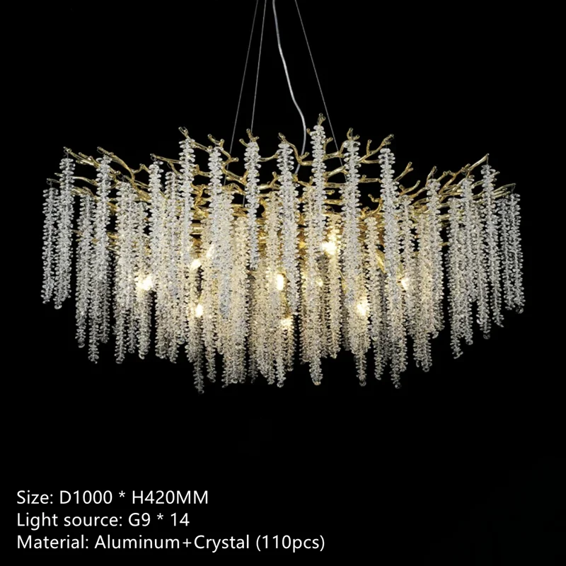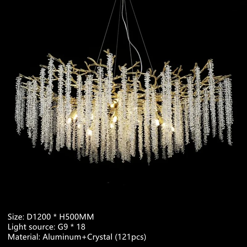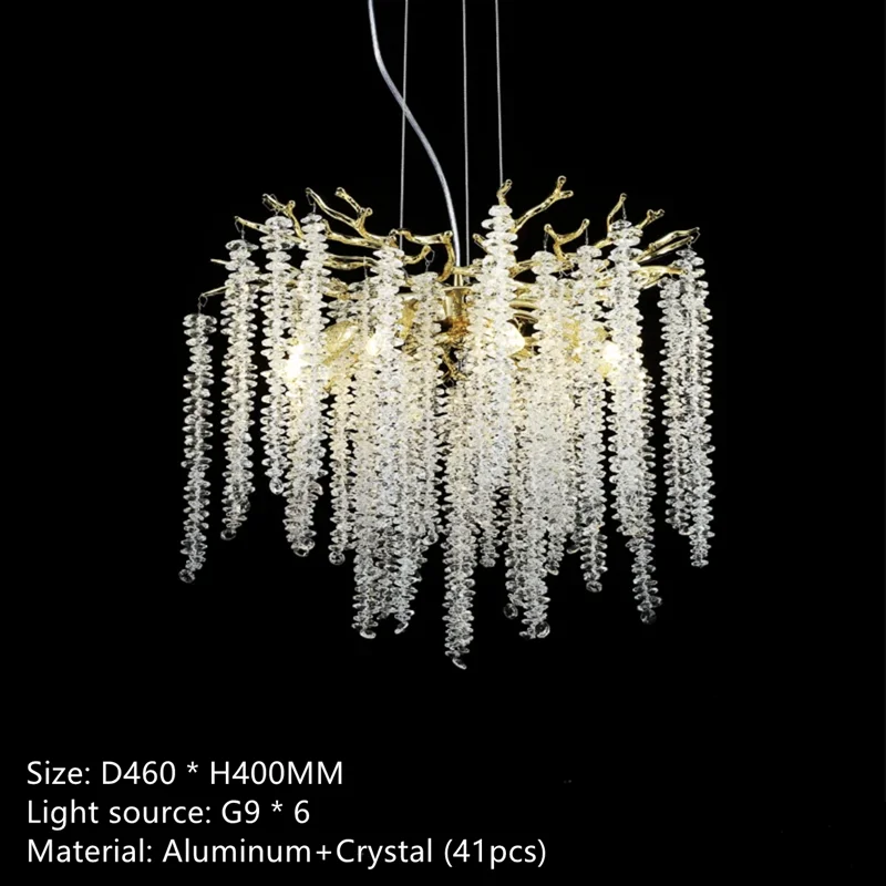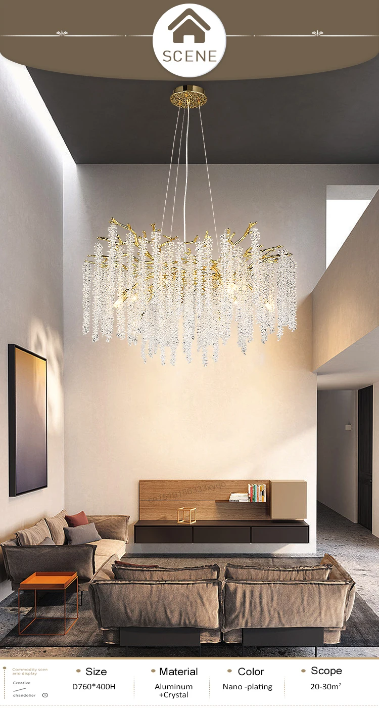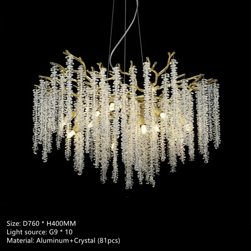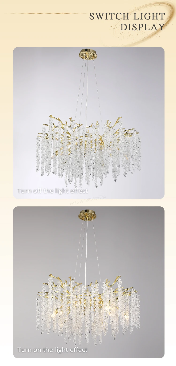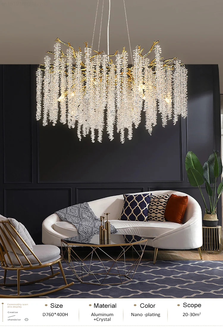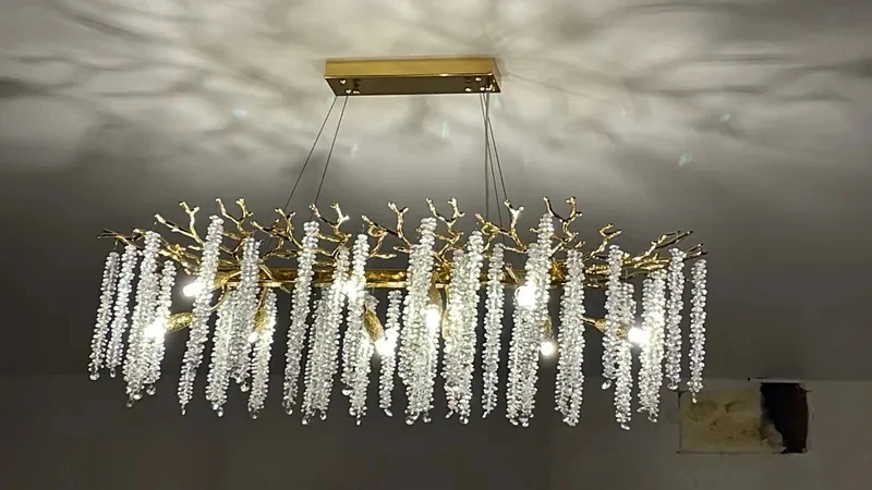 Đèn chùm chiếu sáng nhánh vàng với tinh thể tua rua LED trần treo đèn cho phòng khách nhà bếp Đèn pha lê. Quý khách có nhu cầu mua Đèn chùm nhập khẩu vui lòng liên hệ với chúng tôi để được tư vấn hỗ trợ. Dịch vụ mua hàng Trung Quốc sẽ hỗ trợ quý khách mua hàng từ nhà cung cấp và giao tới tận tay quý khách hàng..Mã sản phẩm:PL213 Đặc điểm:Đèn treo led hiện đại Nguồn điện:AC Loại lắp đặt:Nắp bán phẳng Loại bóng:CRYSTAL Hướng bóng:Xuống có thể điều chỉnh độ sáng:Không Lớp hoàn thiện:SẮT Loại công tắc:Không Bảo hành:3 năm Loại đế:e27 Phong cách:Phong cách hiện đại Nguồn sáng: Bóng đèn LED Chất liệu thân: CRYSTAL Chứng nhận: CCC,ce Is Bóng đèn đi kèm: Có Tên thương hiệu: Artpad Xuất xứ: Trung Quốc đại lục Loại sản phẩm: Đèn chùm Từ khóa: Đèn chùm pha lê vàng sang trọng