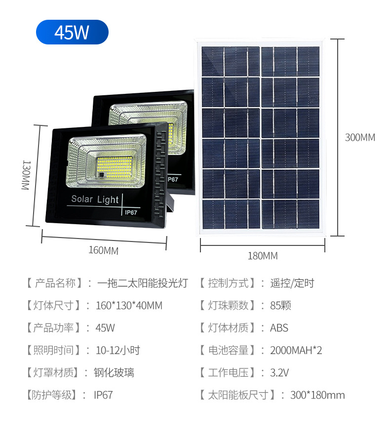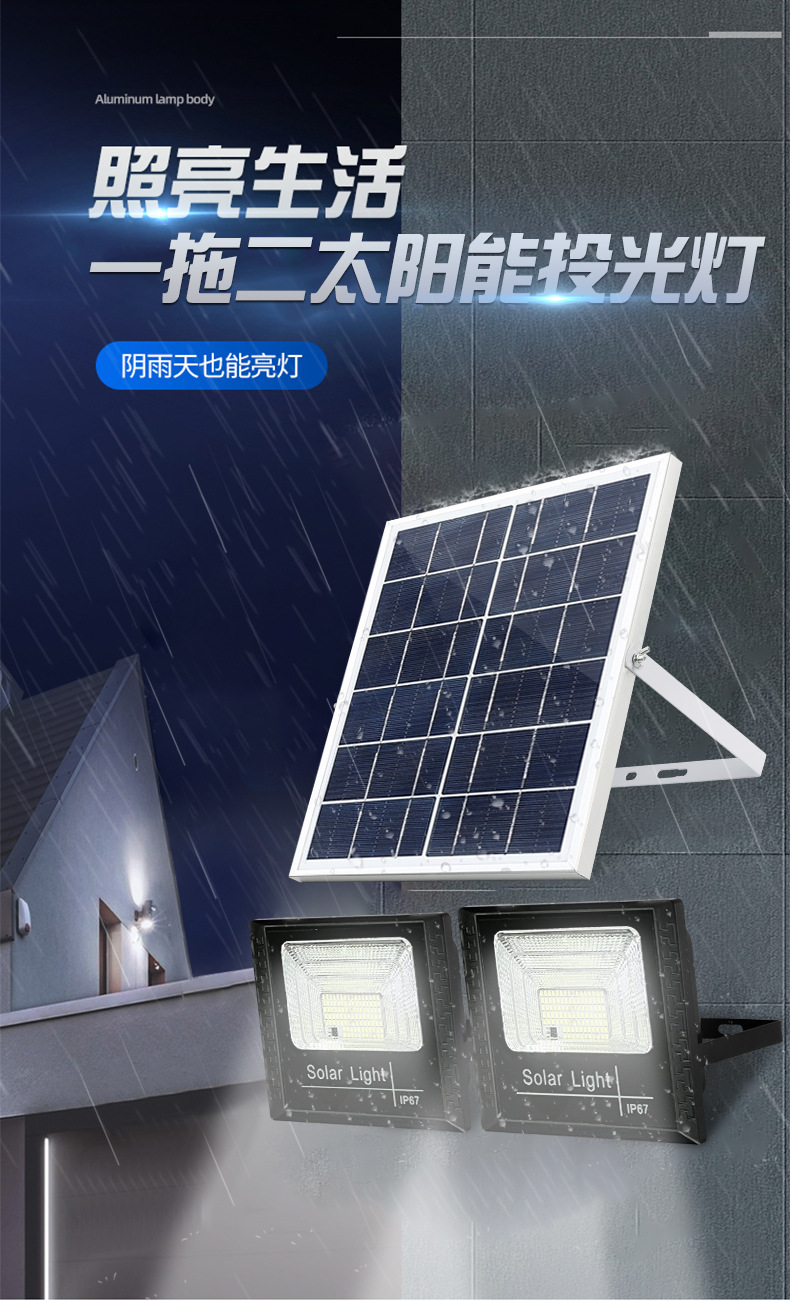 Đèn pha năng lượng mặt trời một trong hai đèn sân vườn ngoài trời LED chiếu sáng trong nhà nông thôn mới đèn đường chống nước siêu sáng