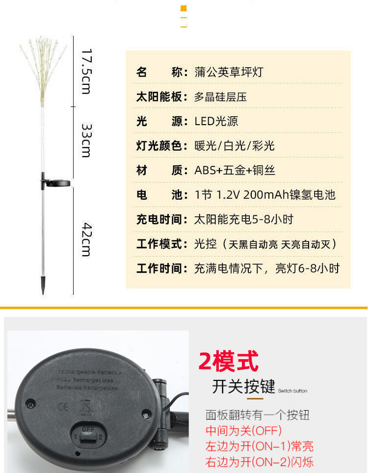Đèn pháo hoa đèn sân vườn năng lượng mặt trời đèn bãi cỏ ngoài trời đèn bồ công anh mới trang trí cảnh quan sân vườn thế hệ mới