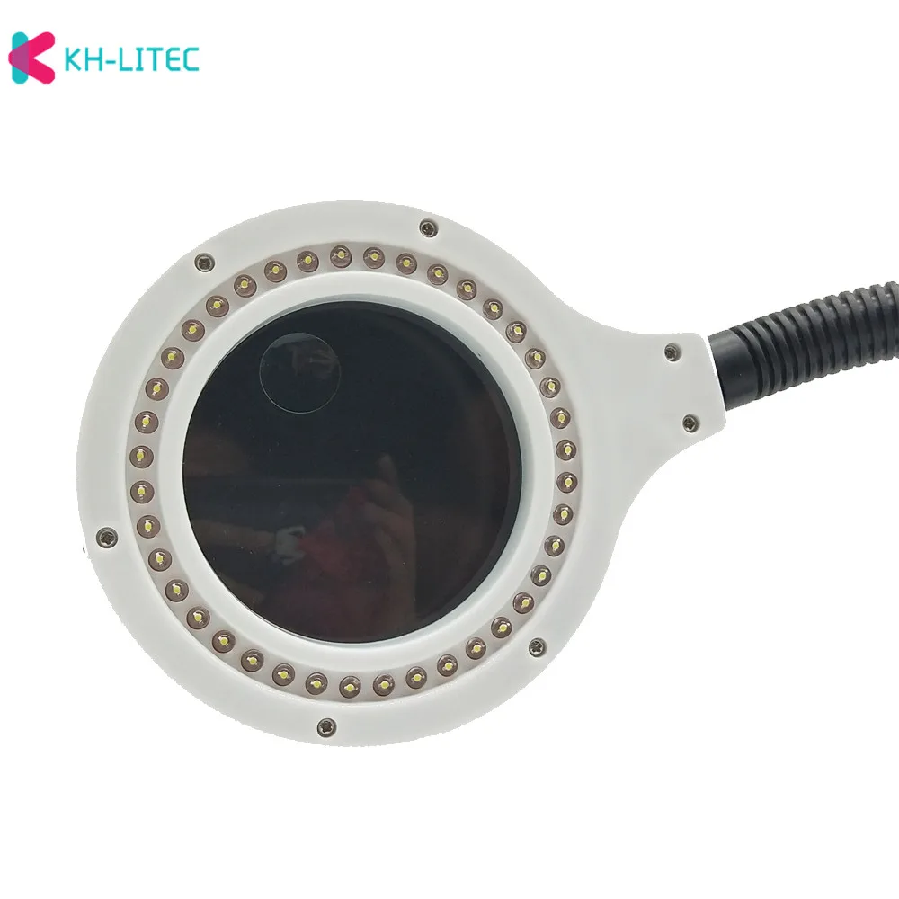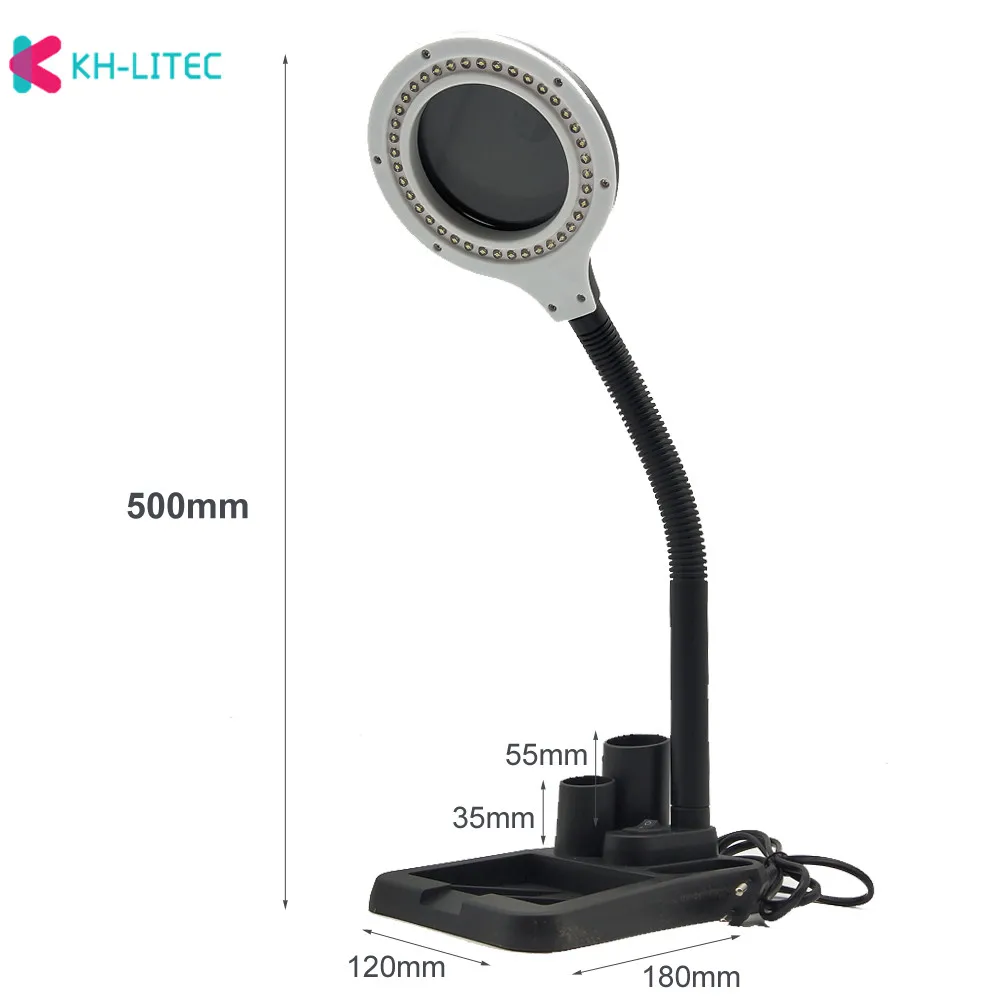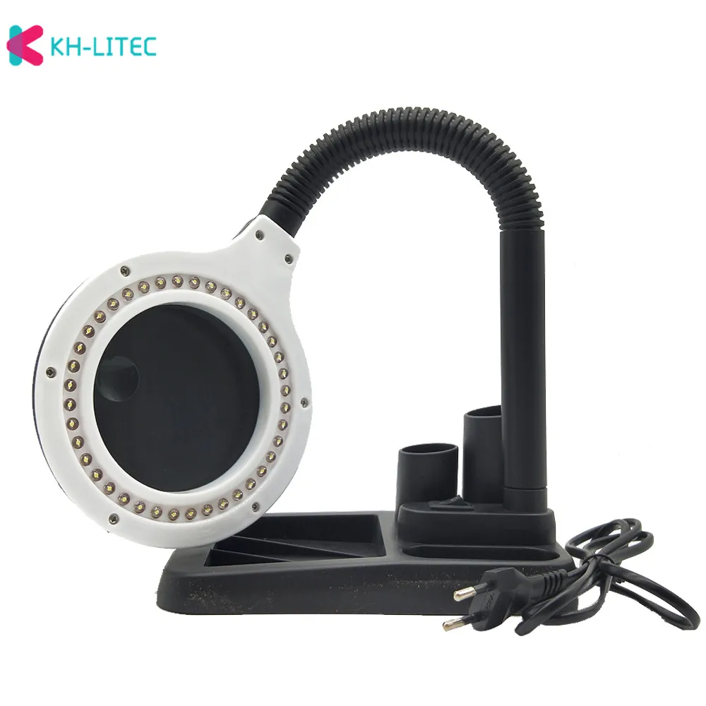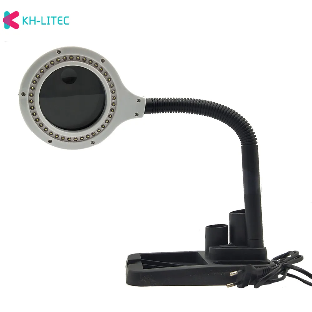 EU Plug 220V Crafts Glass Lens LED Desk Magnifier Lamp Light 5X 10X Magnifying Desktop Loupe Repairing Tools with 40 LEDs Stand