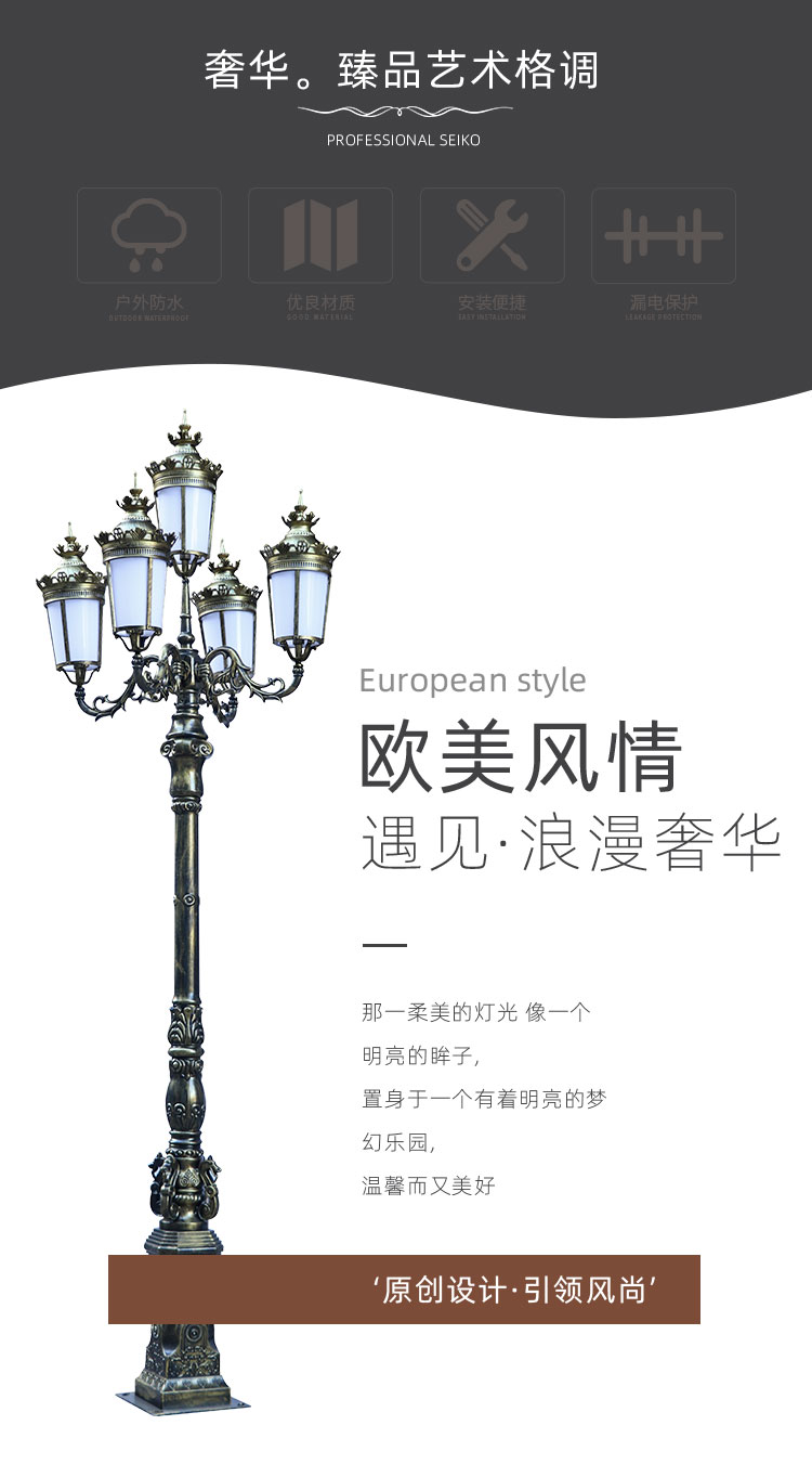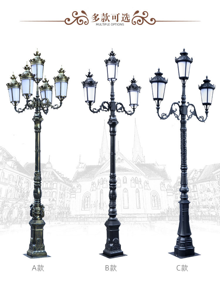Phong cách Châu Âu ánh sáng sân vườn retro biệt thự cảnh quan ánh sáng ngoài trời cộng đồng quảng trường công viên đèn đường không thấm nước đèn đường nhôm đúc cột đèn