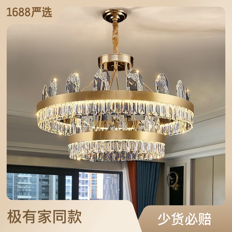 Đèn phòng khách 2023 mới đơn giản hiện đại bầu không khí biệt thự ánh sáng sang trọng đèn chùm pha lê sang trọng cao cấp vỏ đèn