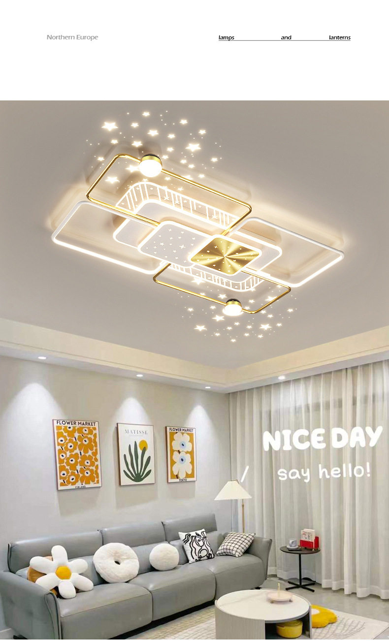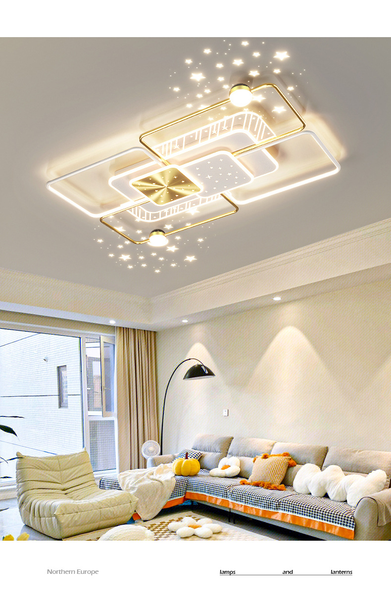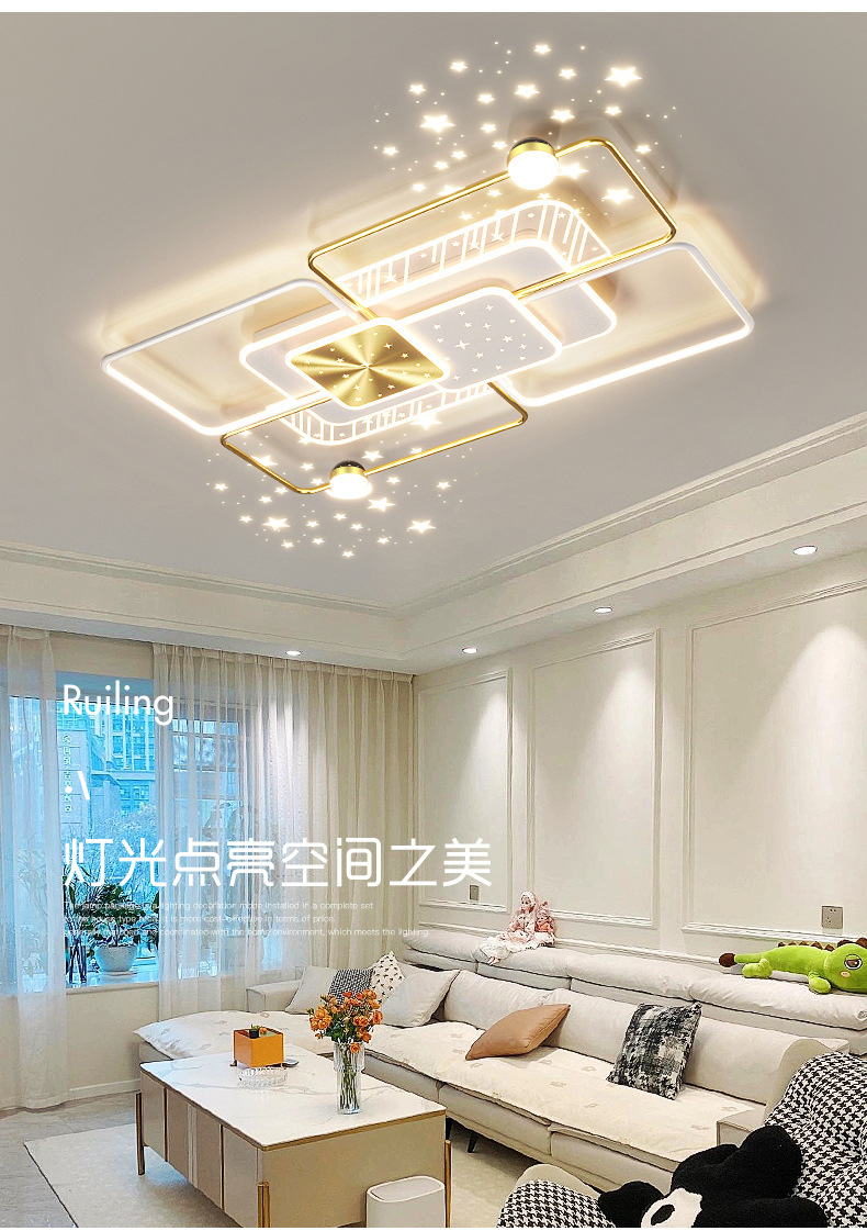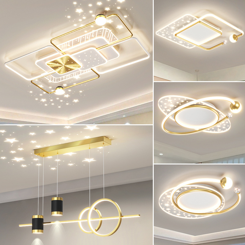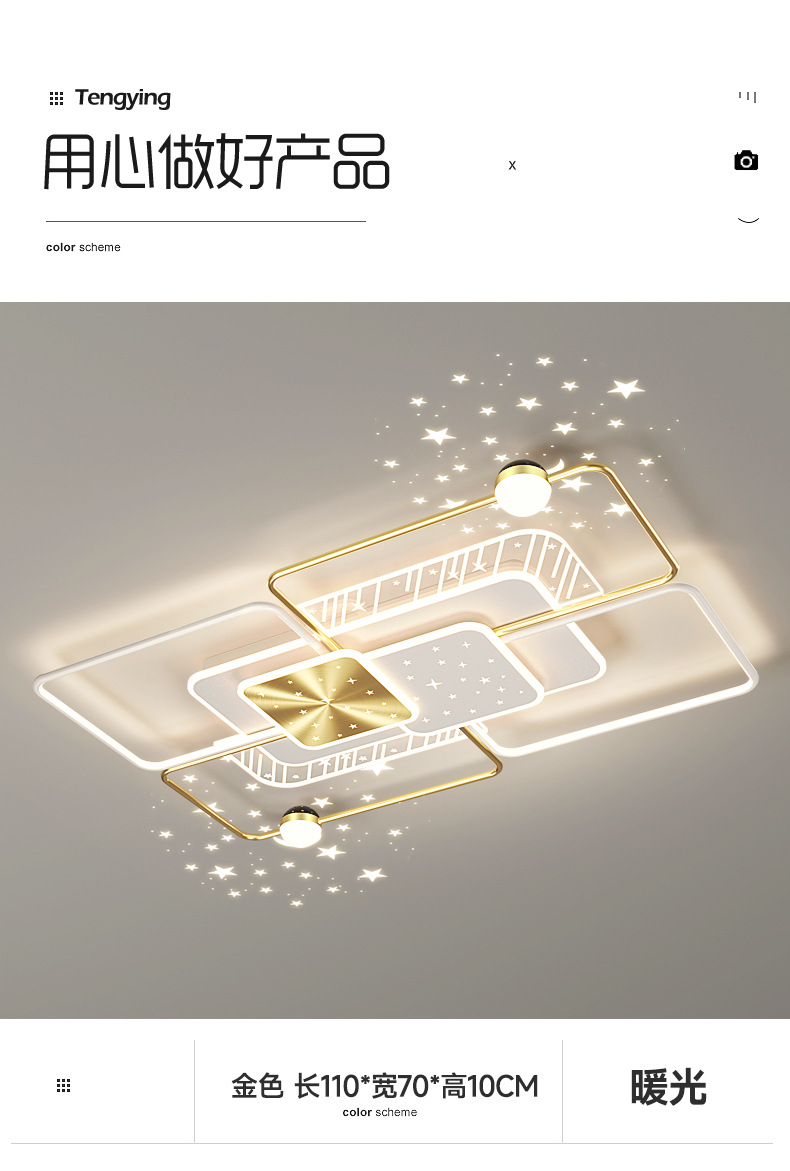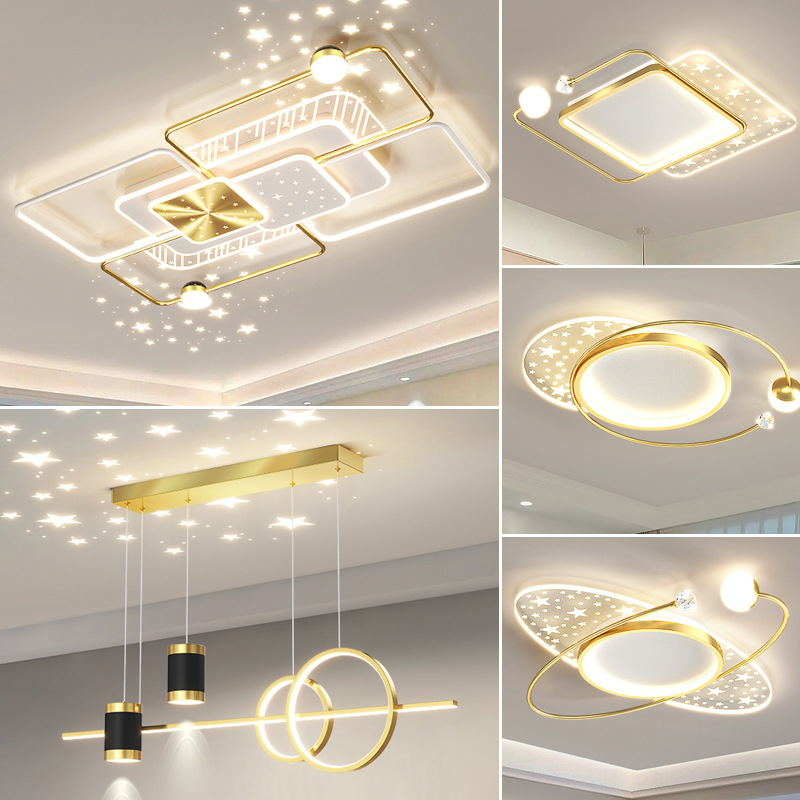 Đèn phòng khách đầy sao thông minh mới Không khí tối giản trang trí nhà cửa ánh sáng vàng sang trọng Đèn sảnh chính ba phòng kết hợp hai sảnh
