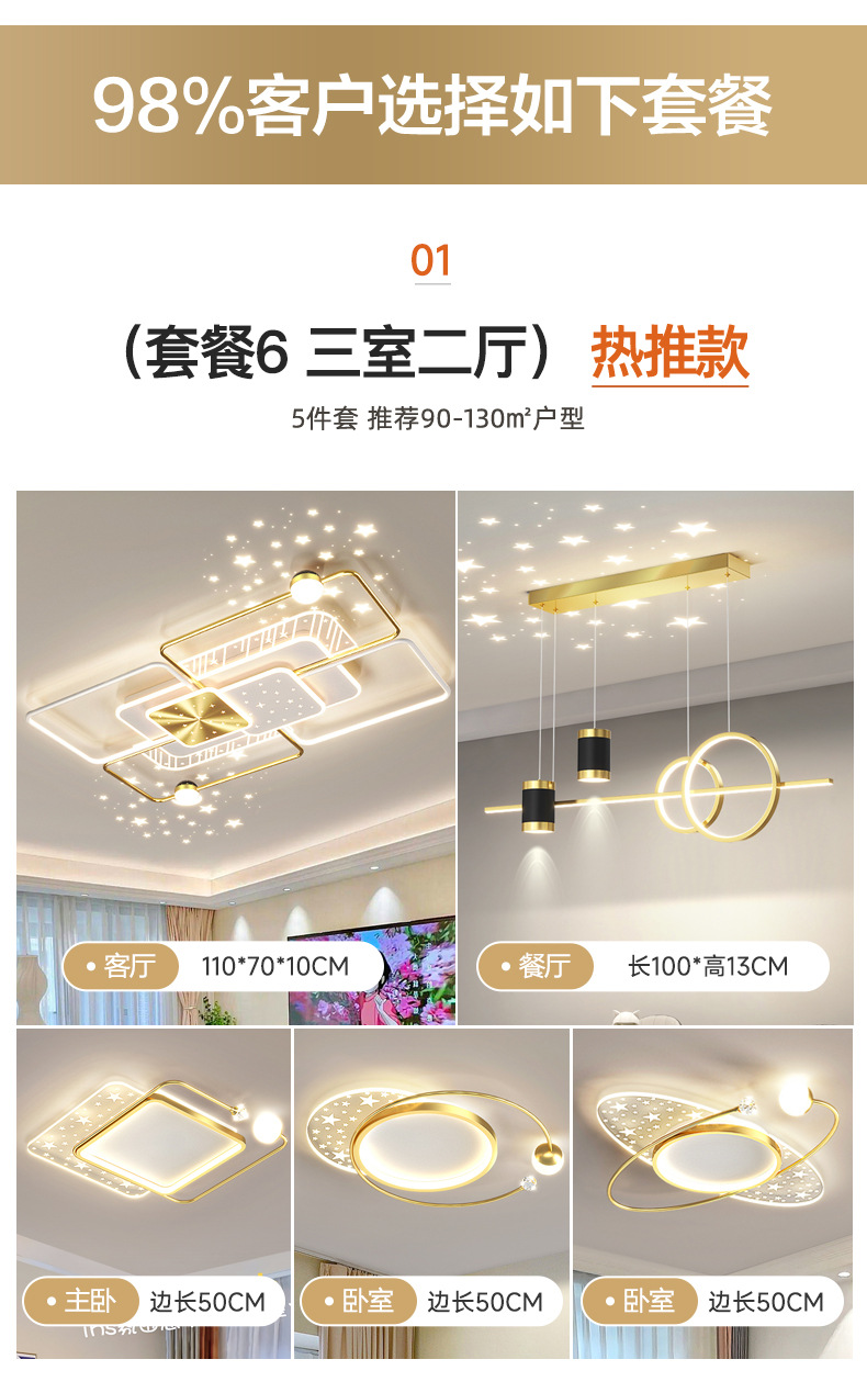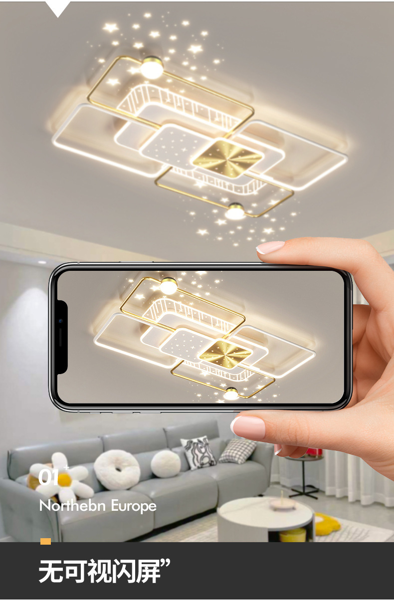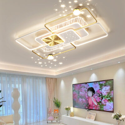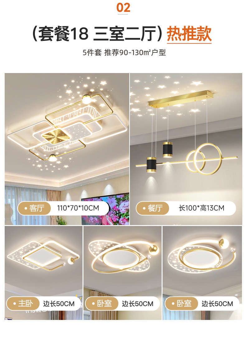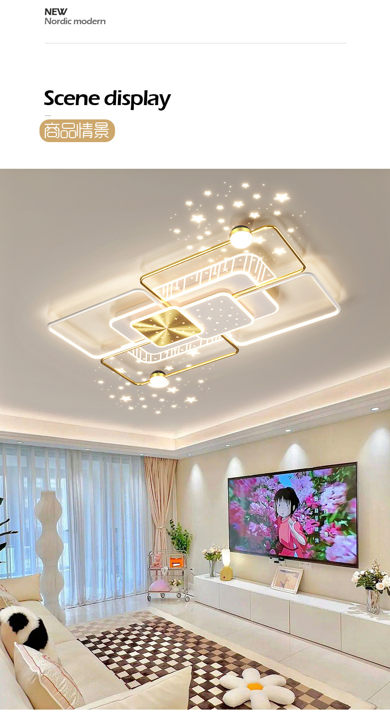 Đèn phòng khách đầy sao thông minh mới Không khí tối giản trang trí nhà cửa ánh sáng vàng sang trọng Đèn sảnh chính ba phòng kết hợp hai sảnh