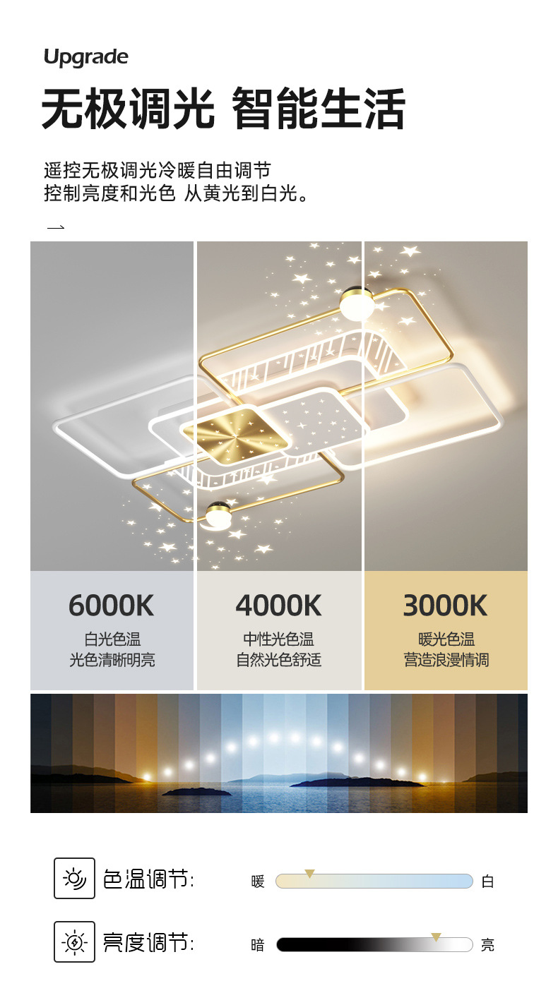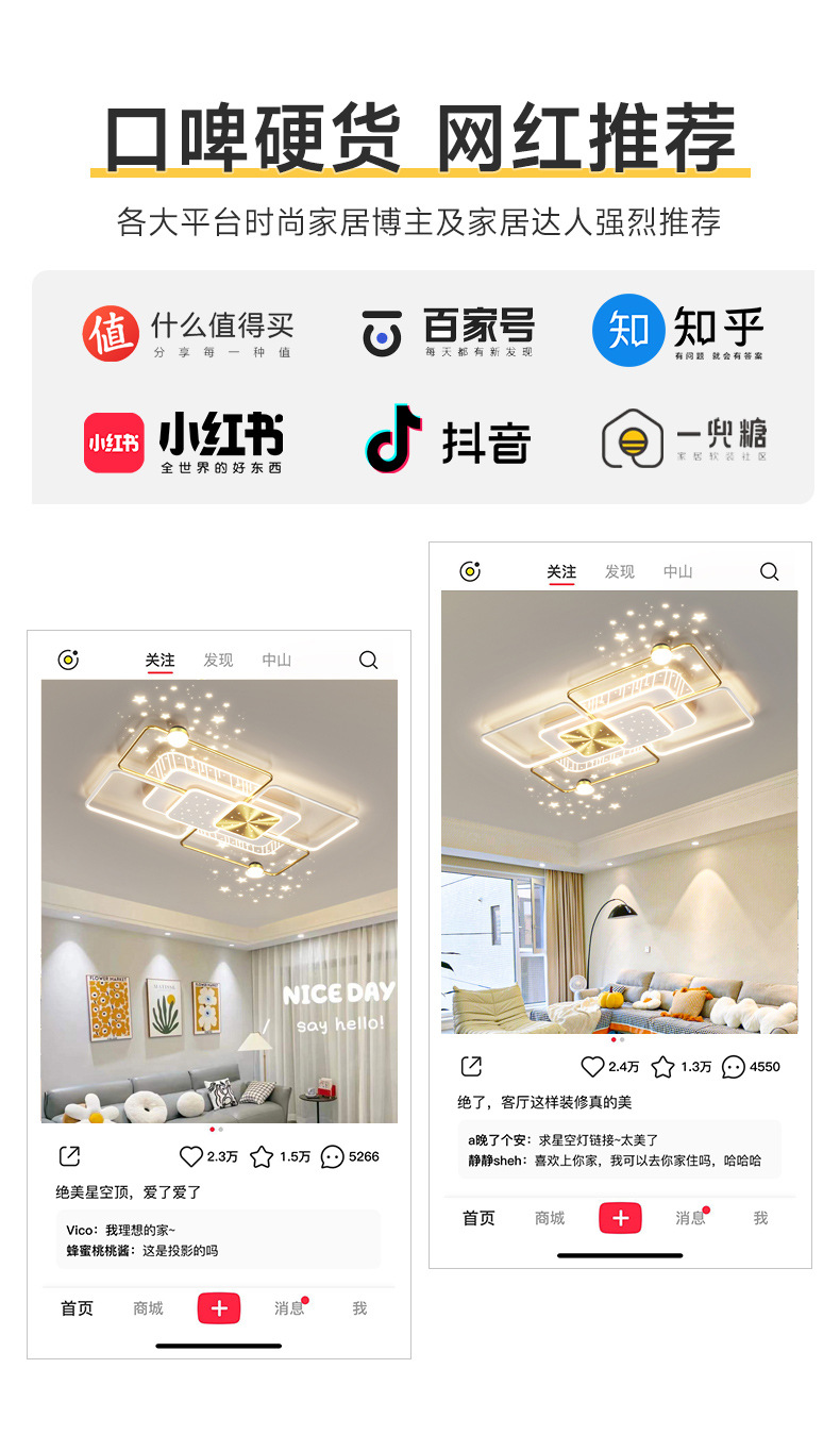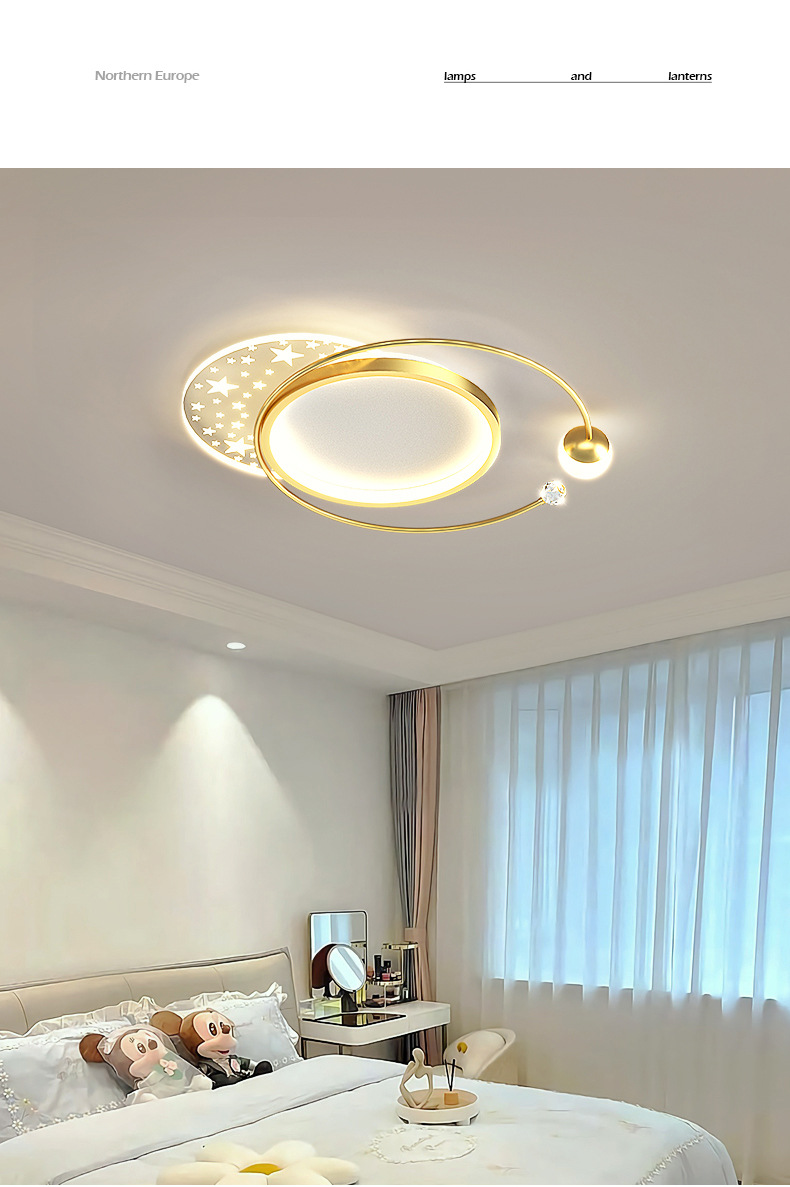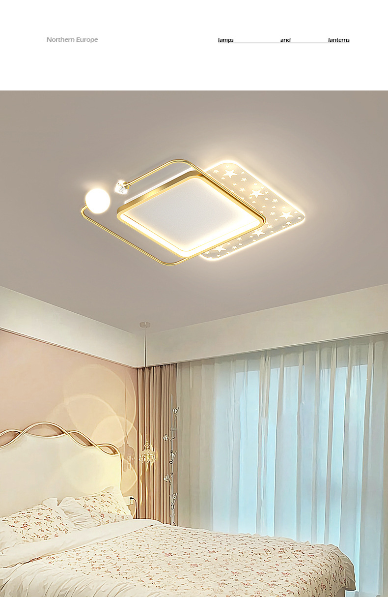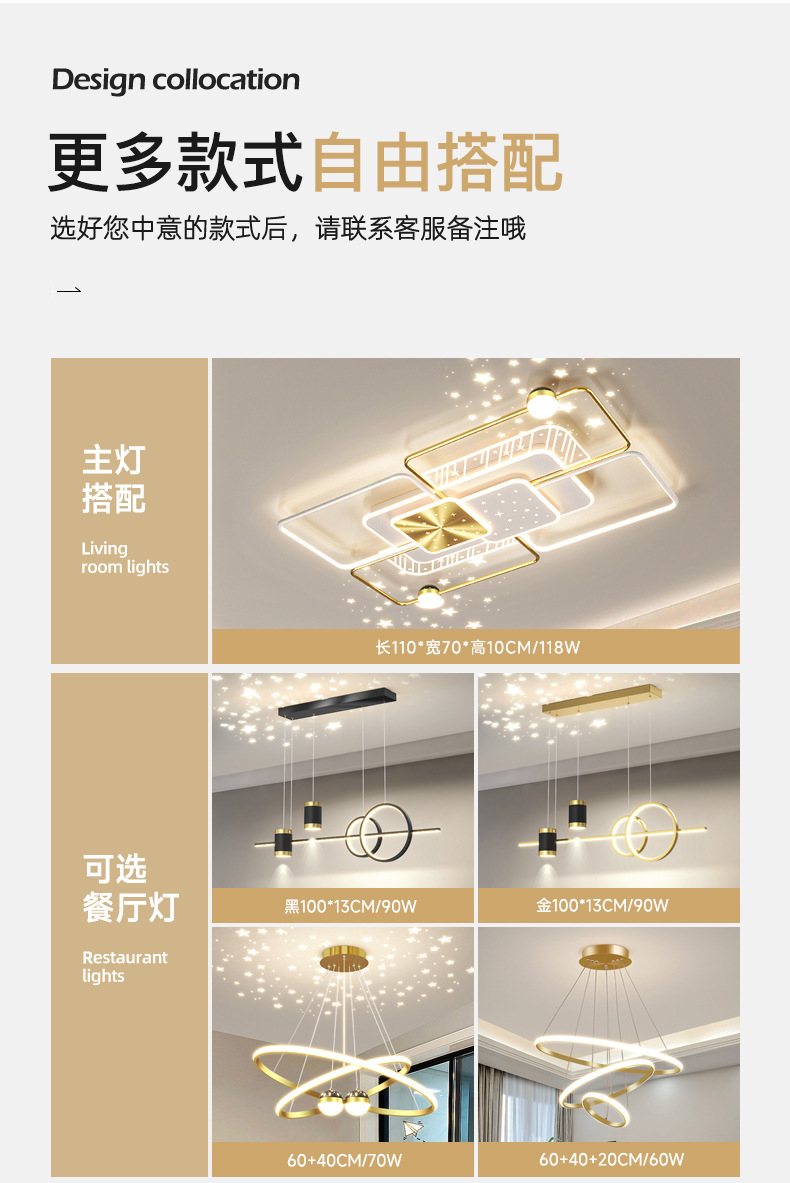Đèn phòng khách đầy sao thông minh mới Không khí tối giản trang trí nhà cửa ánh sáng vàng sang trọng Đèn sảnh chính ba phòng kết hợp hai sảnh