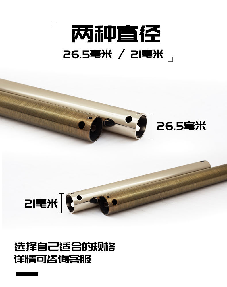 Đèn quạt điện vô hình phổ quát Ống cực mở rộng dày đặc được tùy chỉnh đặc biệt để làm cho các thương hiệu phụ kiện kim loại khác nhau của cột đèn quạt trần