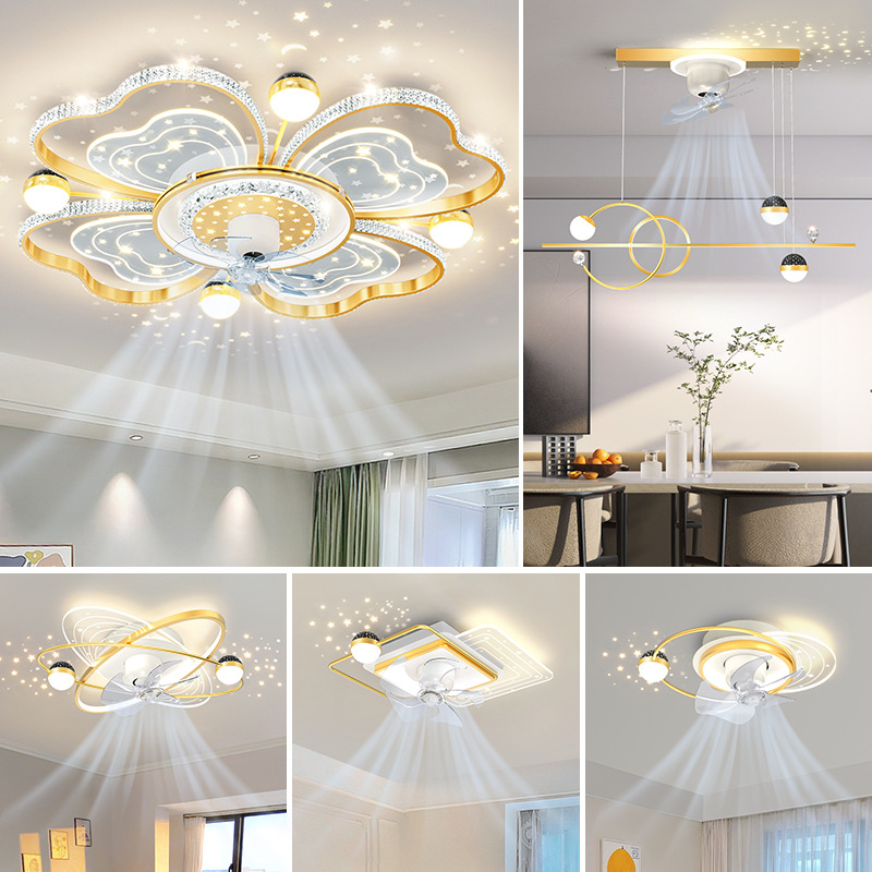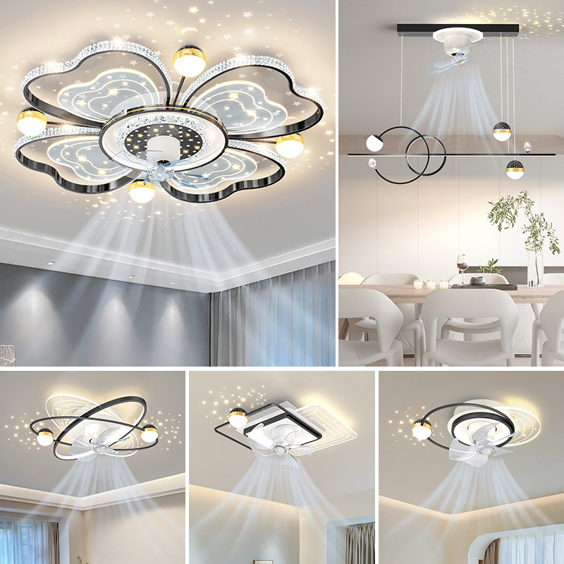 Đèn Quạt Phòng Khách Phòng Ngủ Quạt Nhà Hàng Quạt Trần LED Hộ Gia Đình Biến Tần Thông Minh Đèn Ốp Trần Nhà Máy Trung Sơn