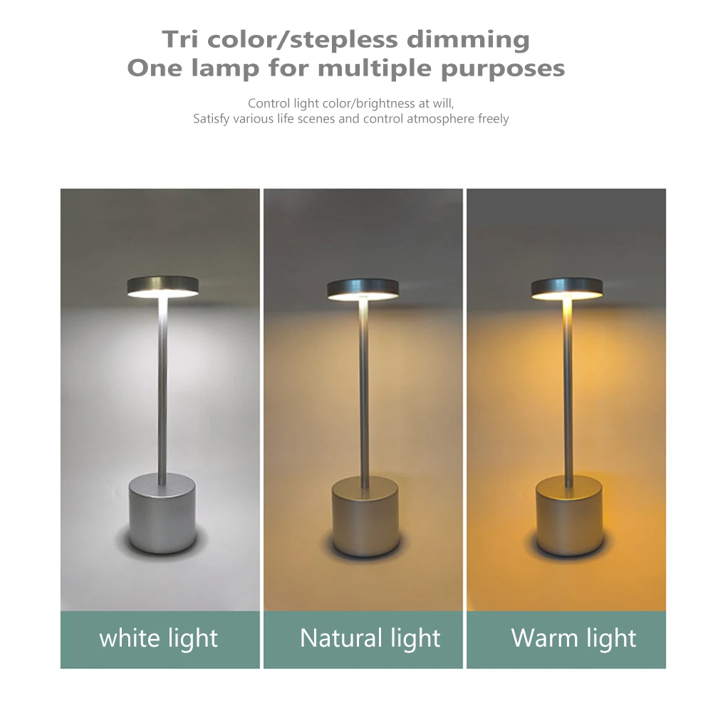 1. Modern design: The indoor and outdoor LED wireless table lamps impress people with their fashionable appearance and are very attractive under the LED table lamps. Beautiful and fashionable appearance design and highly polished metal shell make this retro table lamp super elegant, classic and exquisite.
