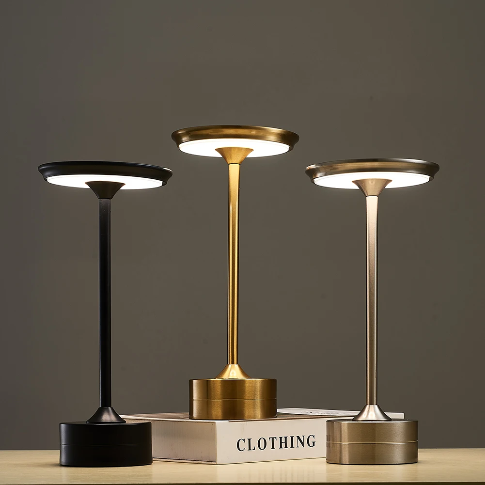1. Modern Design: The indoor and outdoor LED wireless desk lamp impresses with its stylish appearance, which is very eye-catching under the LED desk lamp. The beautiful dumbbell-shaped exterior with a highly polished metal housing makes this vintage desk lamp super elegant, classic, and sophisticated.