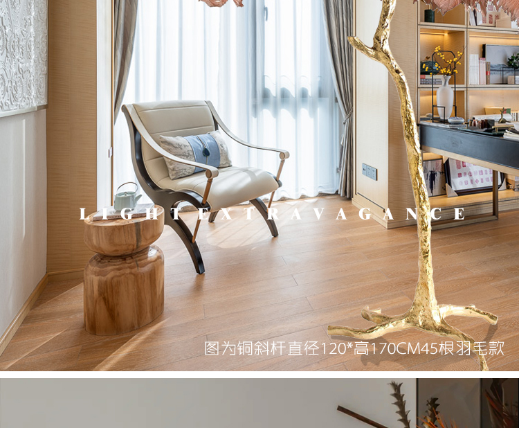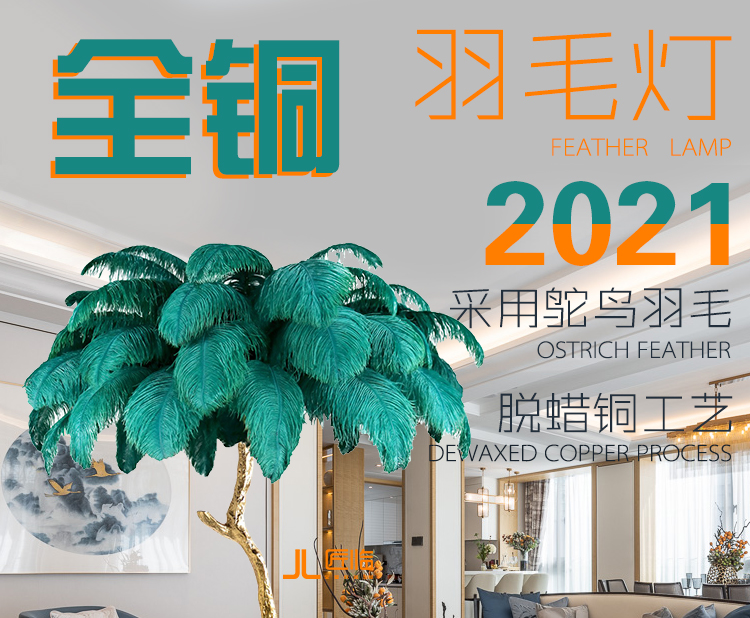 Đèn sàn phòng khách kiểu Mỹ màu đỏ ròng Đèn phòng ngủ hiện đại Bắc Âu đèn lông đà điểu ánh sáng thiết kế sang trọng cảm giác đèn sàn thẳng đứng đồng