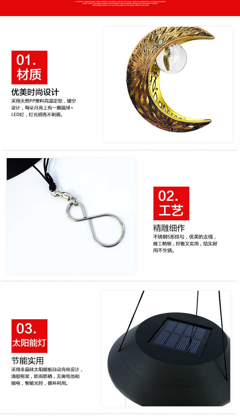 Đèn sân vườn năng lượng mặt trời mới retro trăng rỗng ngoài trời ban công cảnh quan sân vườn chuông gió mặt dây chuyền khí quyển đèn trang trí. Quý khách có nhu cầu mua Đèn ngoài trời nhập khẩu vui lòng liên hệ với chúng tôi để được tư vấn hỗ trợ. Dịch vụ mua hàng Trung Quốc sẽ hỗ trợ quý khách mua hàng từ nhà cung cấp và giao tới tận tay quý khách hàng..Model: HK20220029 Phạm vi áp dụng chính: Vườn sân vườn Đã được cấp bằng sáng chế hay không: Không Chứng nhận: Chứng nhận EU CE Số đơn đặt hàng: HK20220029 Chất liệu: Chế biến cao su Tùy chỉnh: Không Cho dù nguồn cung cấp độc quyền xuất khẩu xuyên biên giới: Có Số chứng chỉ: 20230000 Thời gian chiếu sáng liên tục: 6 giờ (Bao gồm)-12 giờ (không bao gồm) Xuất xứ: Phúc Kiến Mã số sản phẩm: HK20220029 Thương hiệu: Hạt đèn Hongkai Thương hiệu: Hongkai Nền tảng hạ nguồn chính: Amazon/wish/AliExpress/Trạm độc lập/LAZADA/Khác/Khác với dịch vụ tự phục vụ được ủy quyền Thương hiệu: Có Đây có phải là người nộp thuế thông thường không: Có Công suất nguồn sáng: 0,7 Loại nguồn sáng: Mức độ bảo vệ năng lượng mặt trời: IP65 Điện áp: 1,2 Kích thước: Mặt trăng nhỏ-Trắng ấm/Đèn lồng màu trăng nhỏ/Mặt trời nhỏ Chuông gió-Ánh sáng ấm áp/Nhỏ Chuông gió mặt trời -Đèn lồng màu/kết hợp mặt trăng và mặt trời-ánh sáng ấm áp/kết hợp mặt trăng và mặt trời-Đèn lồng màu/kết hợp mặt trời và sao mặt trăng-ánh sáng trắng ấm áp/sao mặt trời và mặt trăng-trắng ấm/ngôi sao nhỏ-trắng ấm/ngôi sao nhỏ- đèn lồng màu/đèn lồng màu ngôi sao nhỏ Phong cách: Châu Âu Khu vực bán hàng chính: Châu Âu/Nam Mỹ/Đông Nam Á/Bắc Mỹ/Đông Bắc Á/Trung Đông/Khác/Khác Có nên nhập khẩu: Không Loại: Đèn sân vườn năng lượng mặt trời