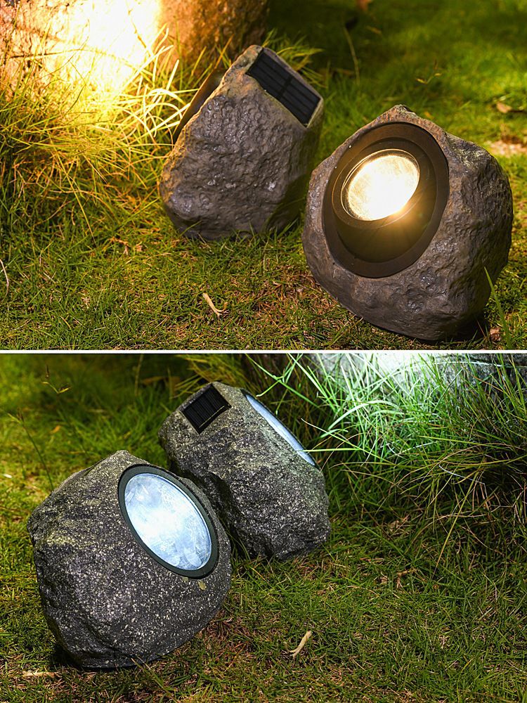 Đèn Sân Vườn Năng Lượng Mặt Trời Ngoài Trời Cảnh Quan Sân Vườn Đèn Nhựa Chống Thấm Nước Mô Phỏng Đá Đèn Led Bãi Cỏ Cây Ánh Sáng